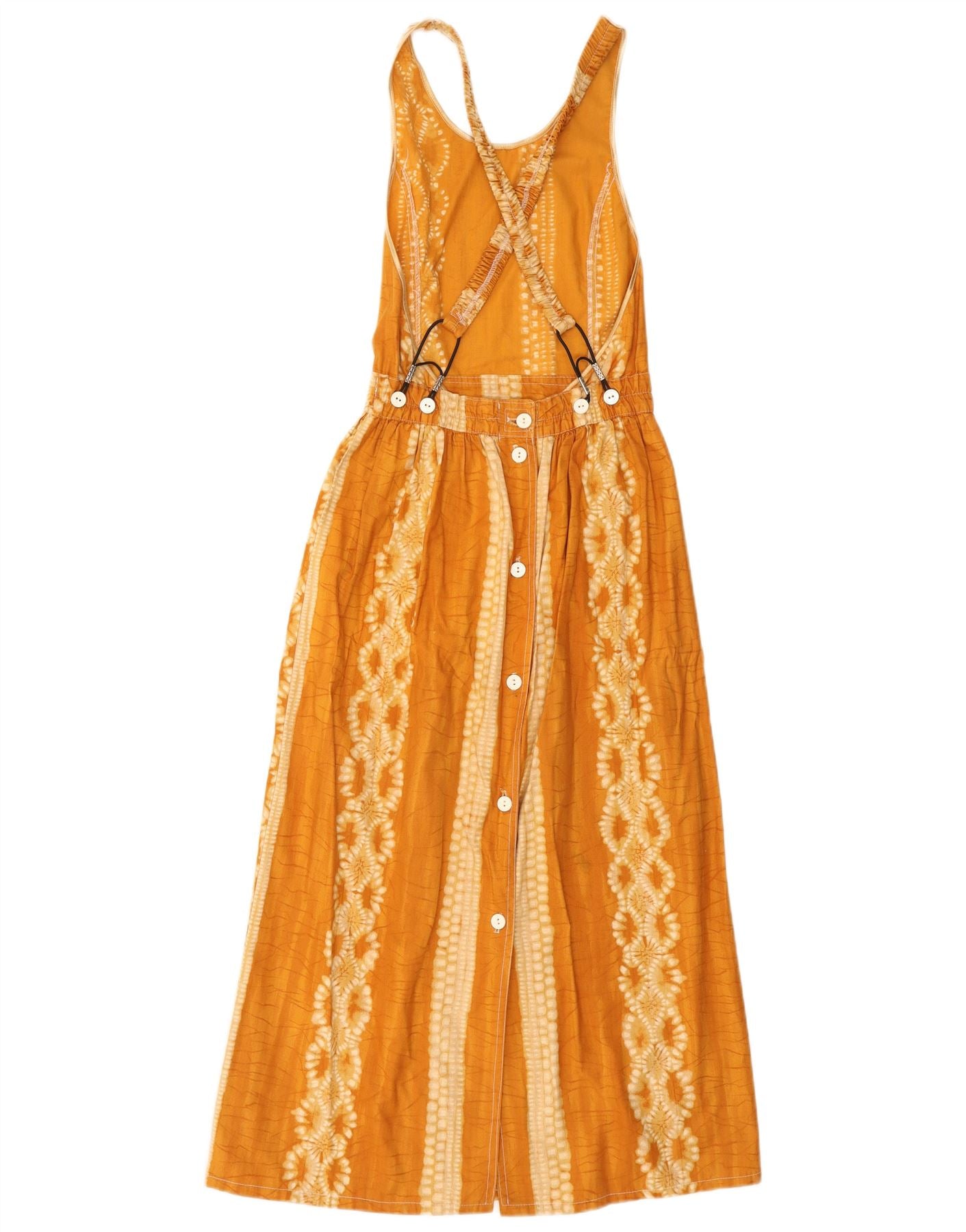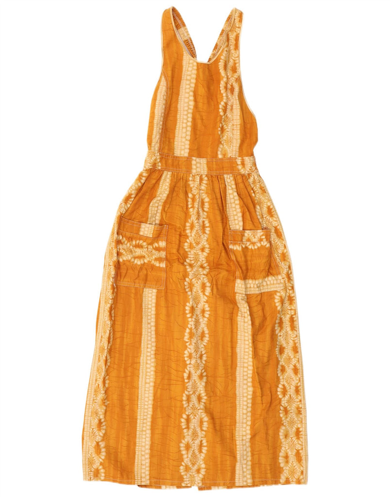 VINTAGE Womens Sleeveless Dungaree Dress UK 8 Small Yellow Floral Cotton