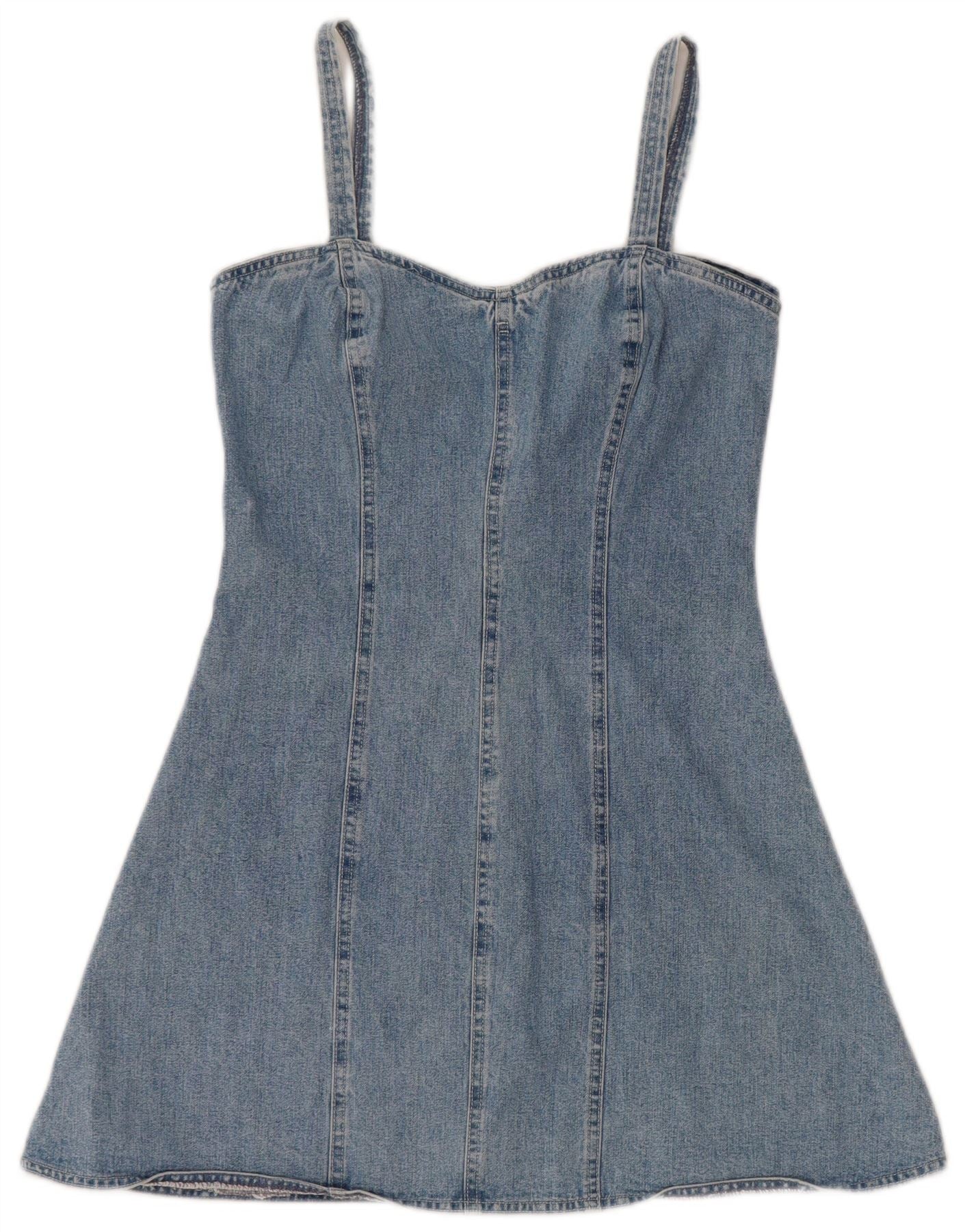 Vintage Womens Sleeveless Mini Denim Dress UK 12 Medium Blue Cotton