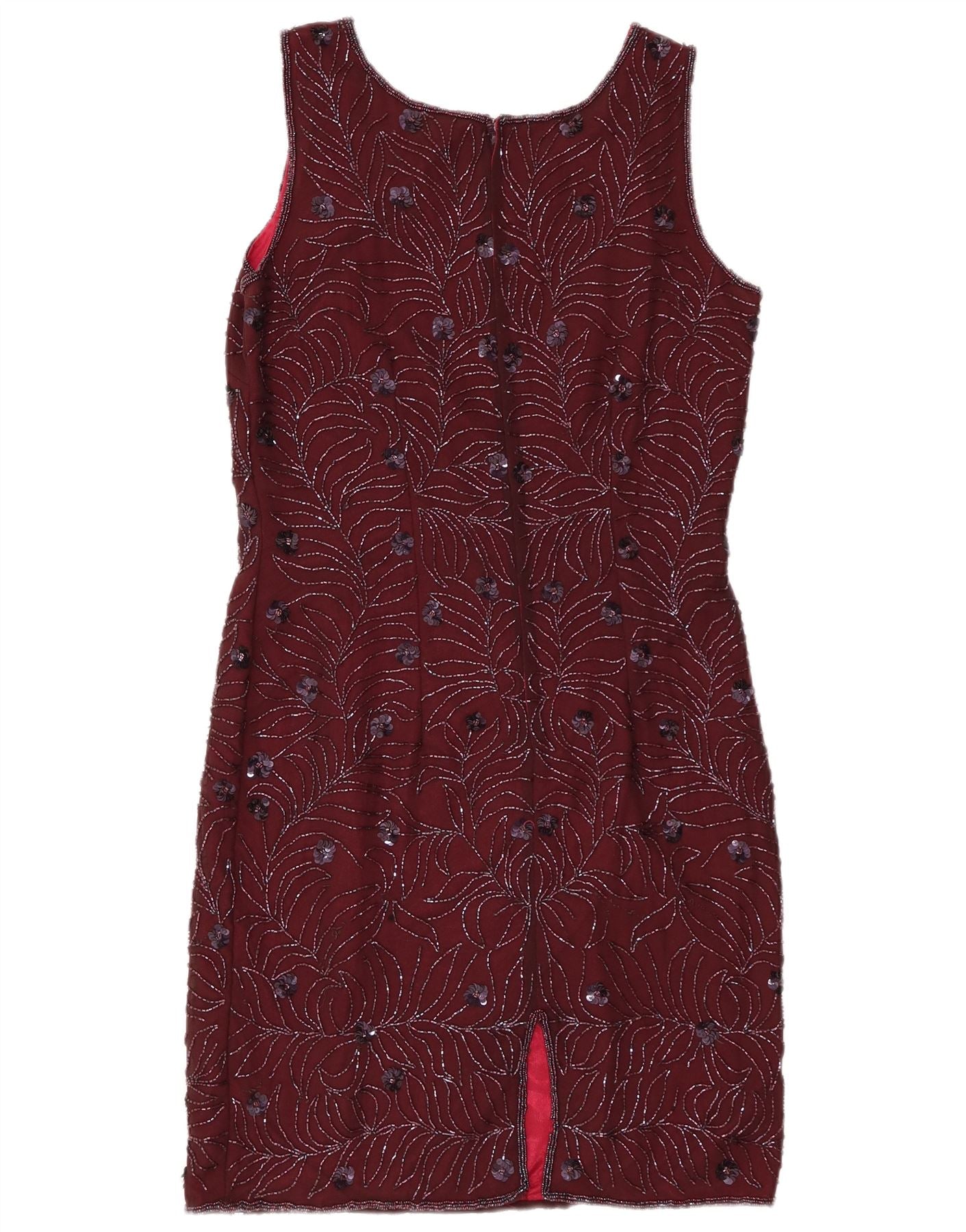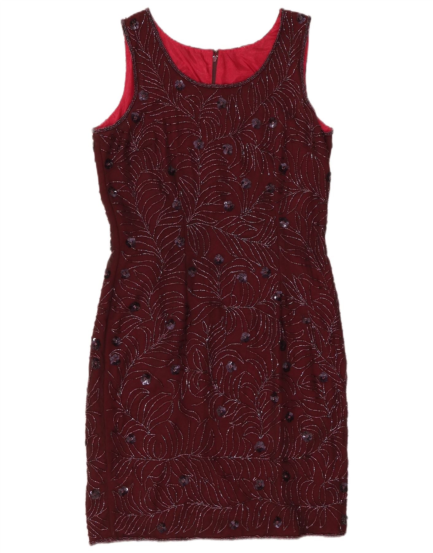 VINTAGE Womens Sleeveless Sheath Dress UK 12 Medium Burgundy Floral