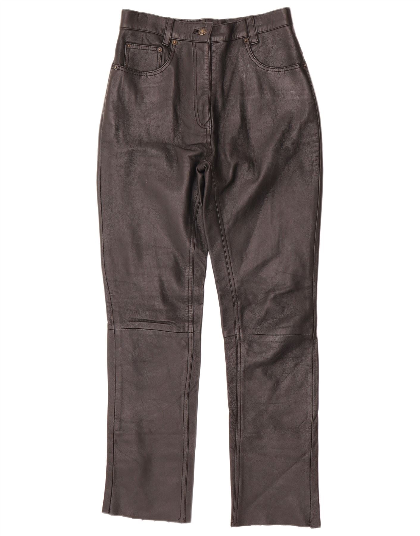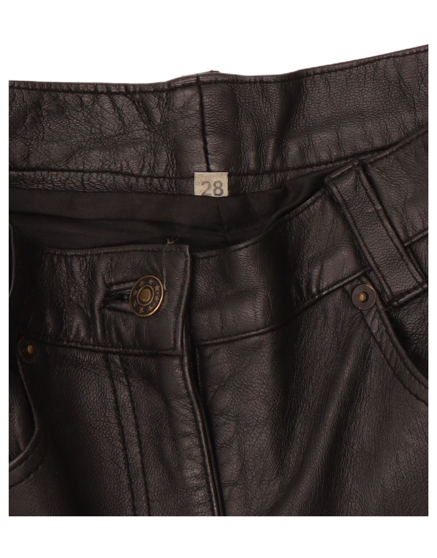 VINTAGE Womens Slim Leather Trousers W28 L30 Black