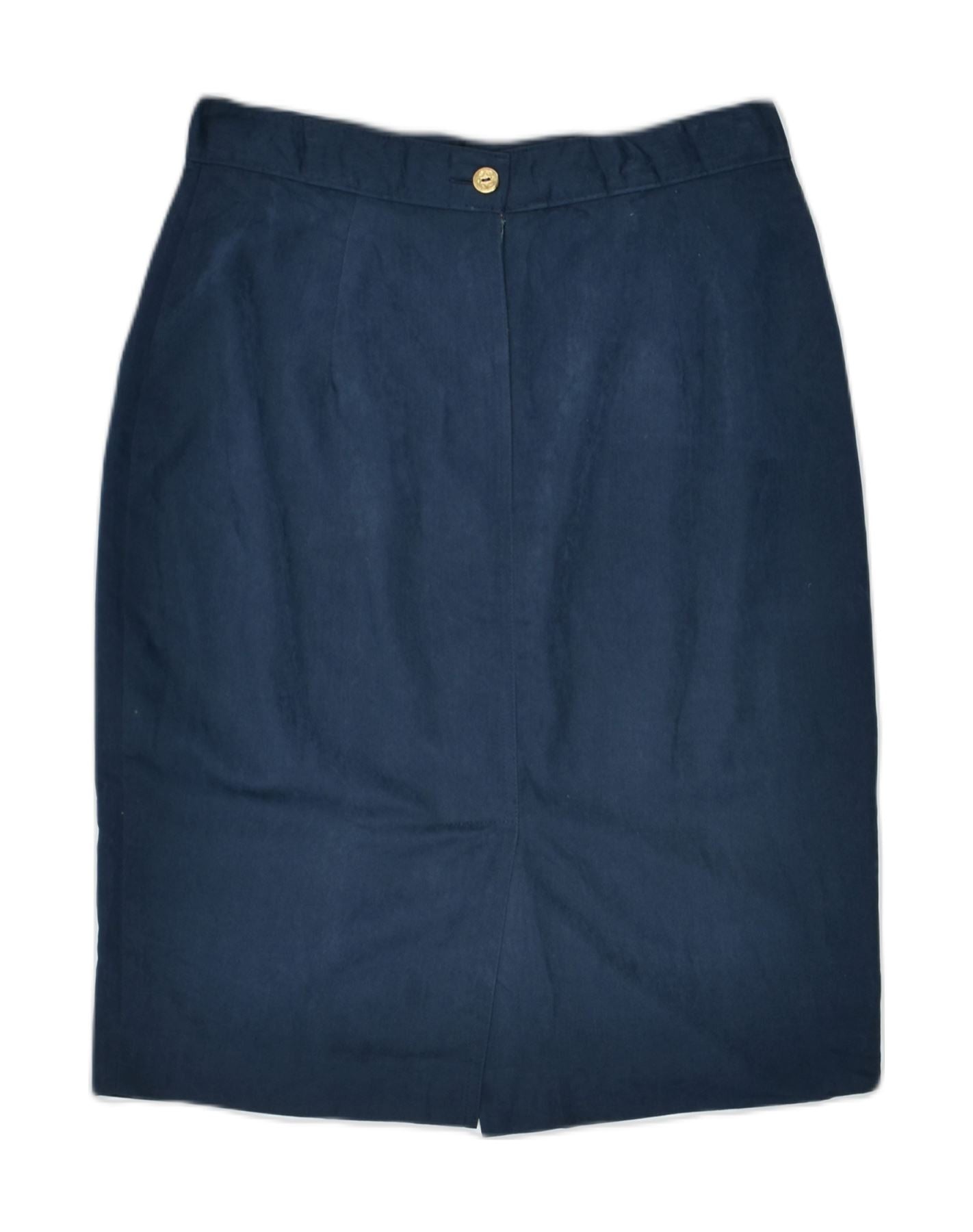 VINTAGE Womens Straight Skirt IT44 Medium W28 Navy Blue Viscose