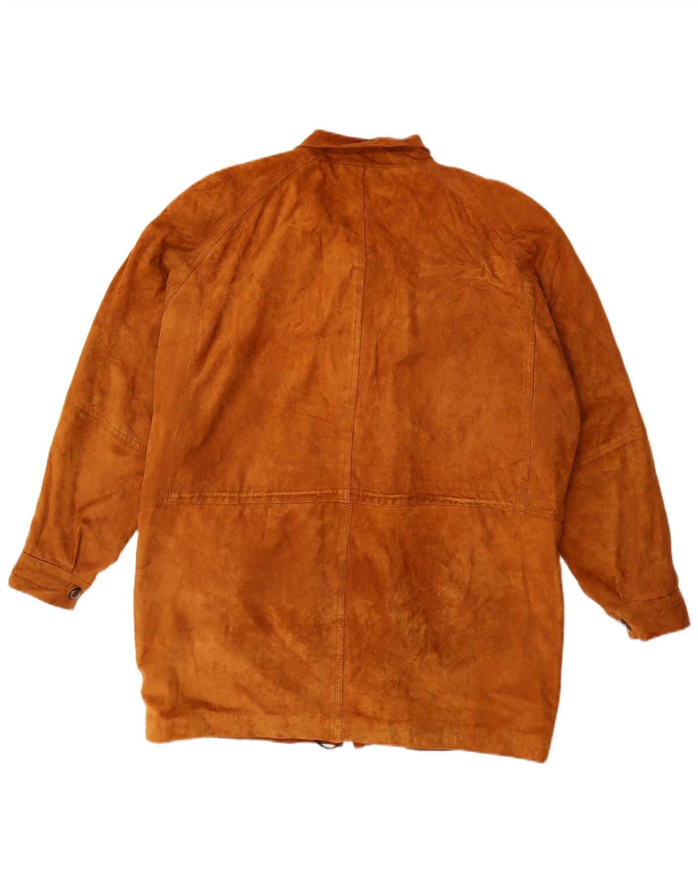 • AI Description: This Vintage mens suede jacket offers a rich brown hue and a luxurious, soft texture. It features a classic collared neckline and long sleeves, providing a timeless silhouette. The front is secured with a button closure, complemented by practical pockets. A regular fit ensures comfortable wear. The jacket is fully lined, adding to its quality and structure. This retro piece combines style with enduring appeal.
