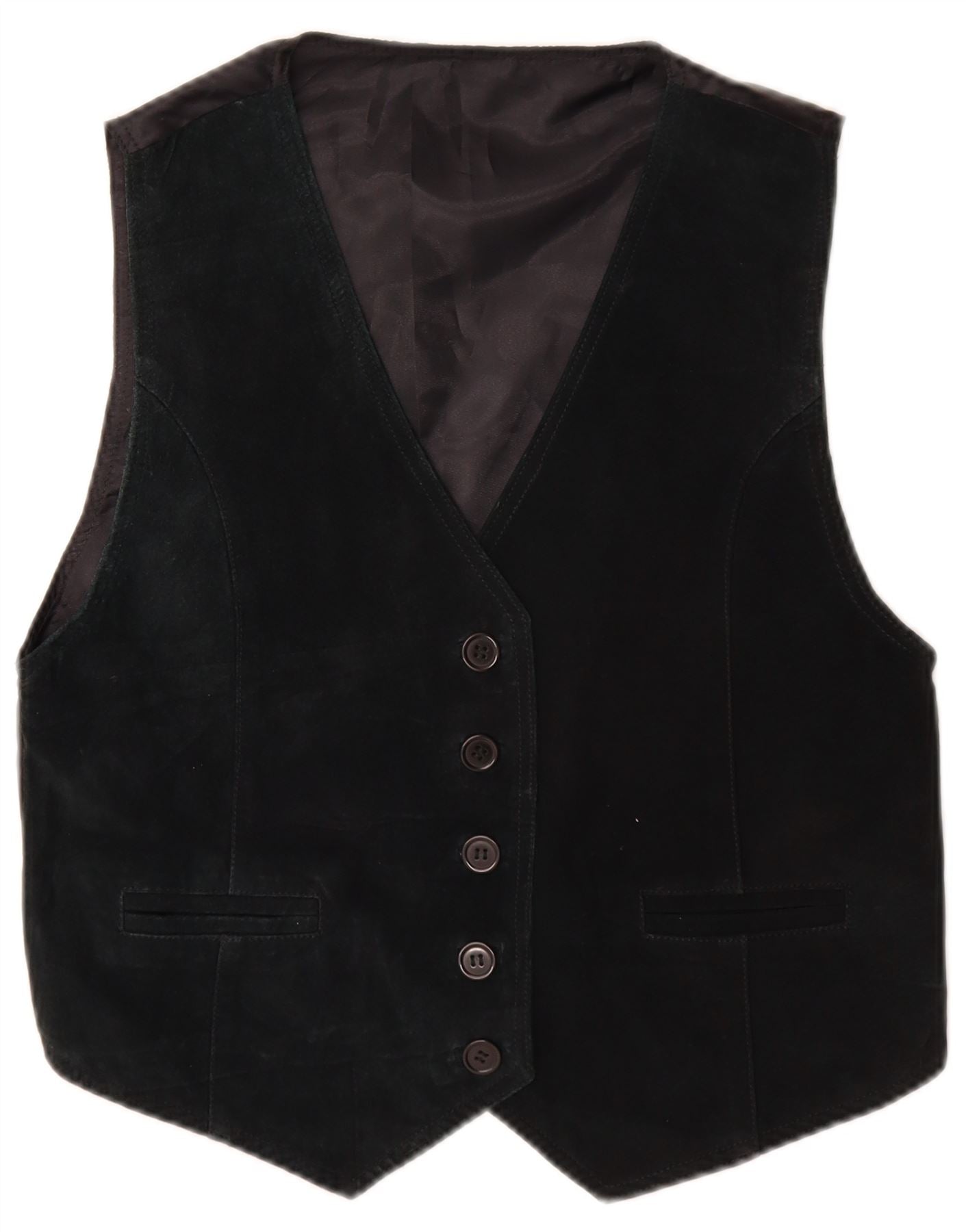 Vintage Womens Suede Waistcoat UK 10 Small Black Leather