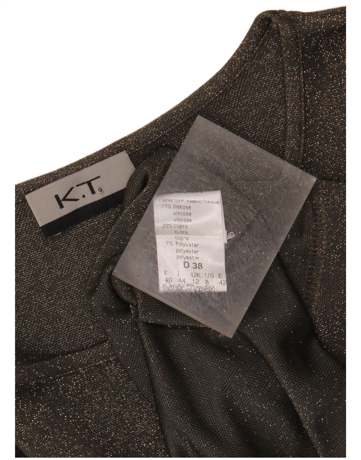 VINTAGE Womens Top Long Sleeve UK 12 Medium Green Flecked Viscose