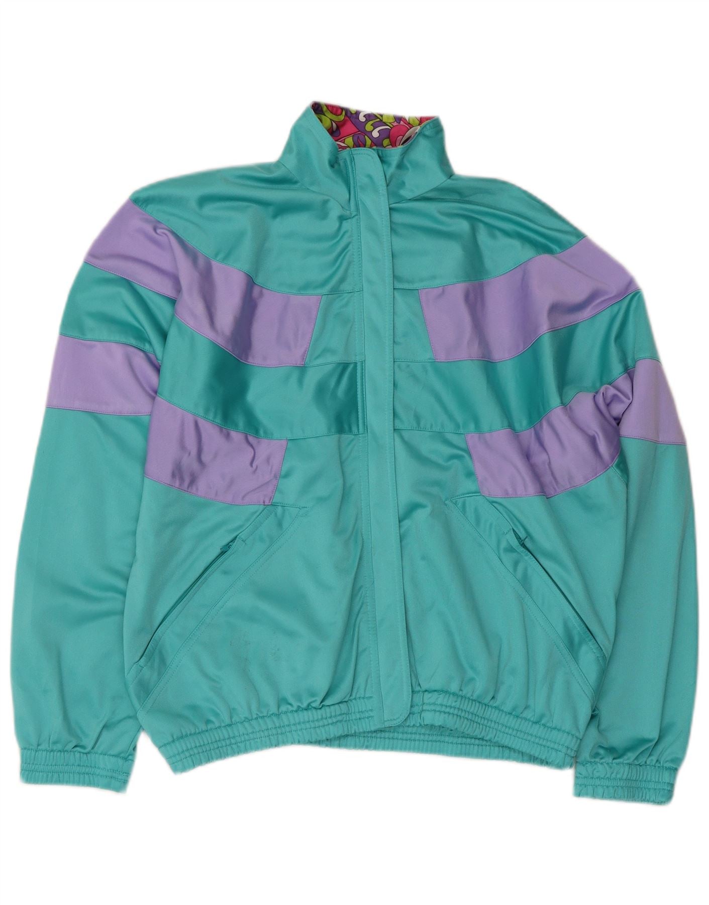 VINTAGE Womens Tracksuit Top Jacket UK 18 XL Turquoise Colourblock