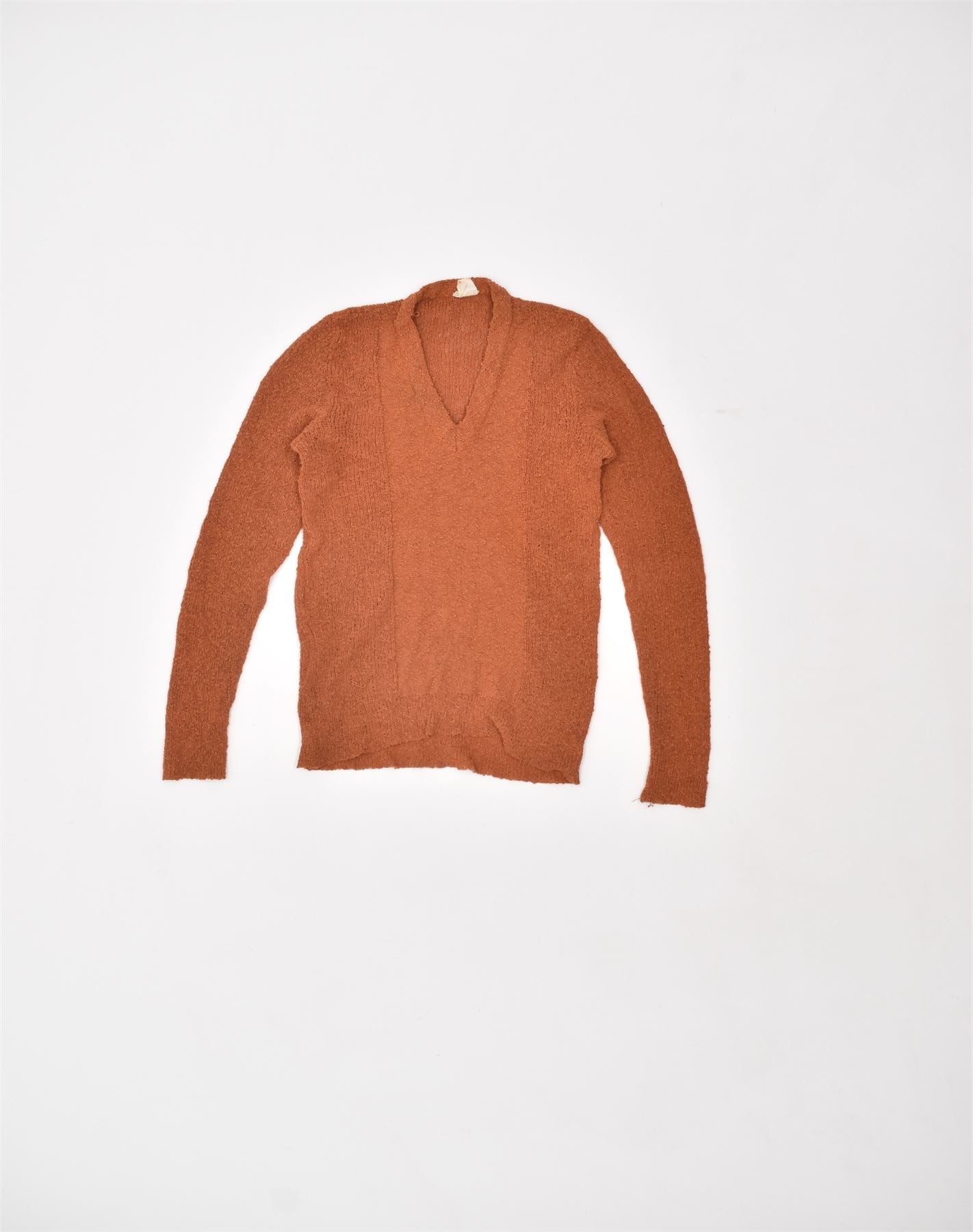 VINTAGE Womens V-Neck Jumper Sweater UK 10 Small Brown