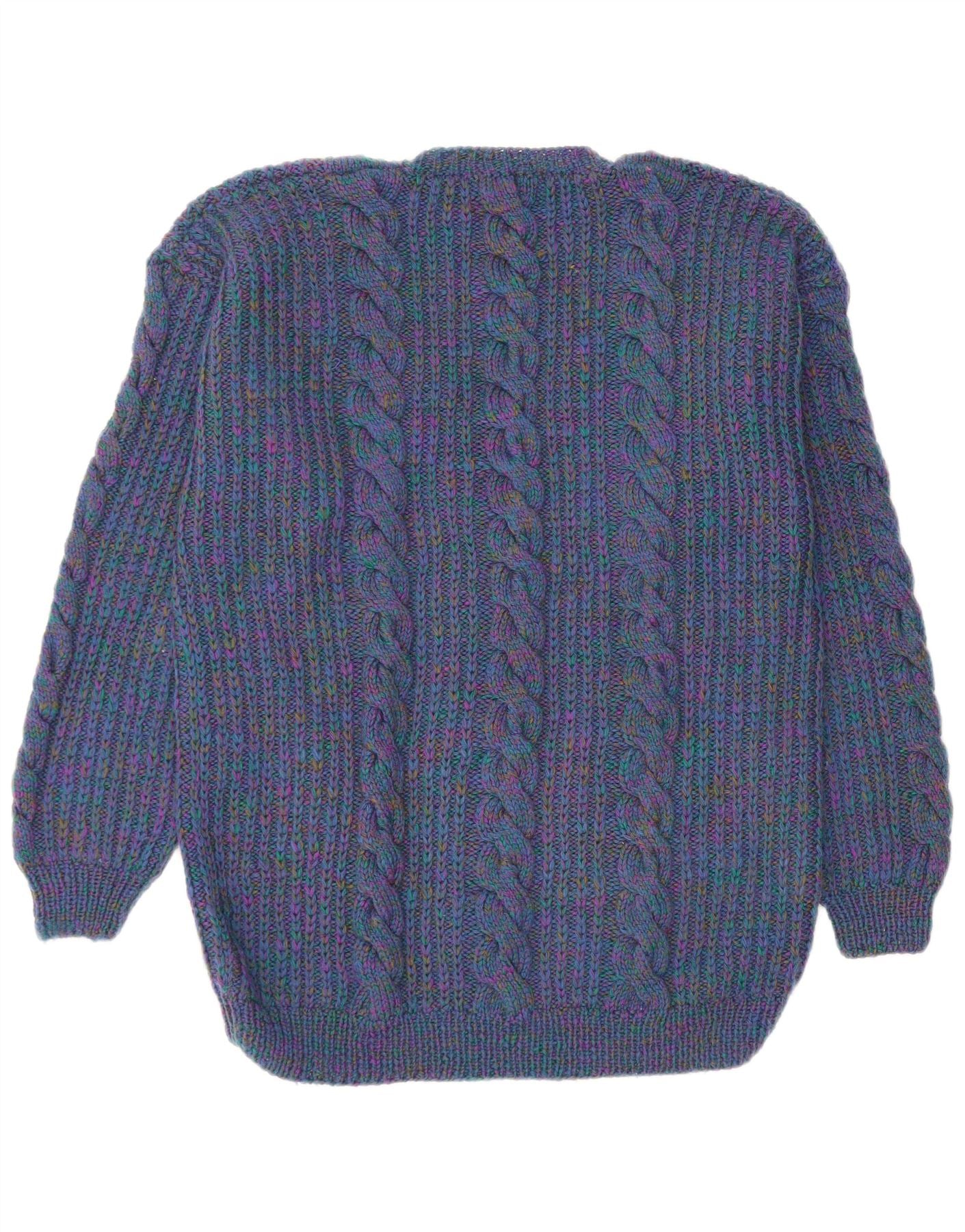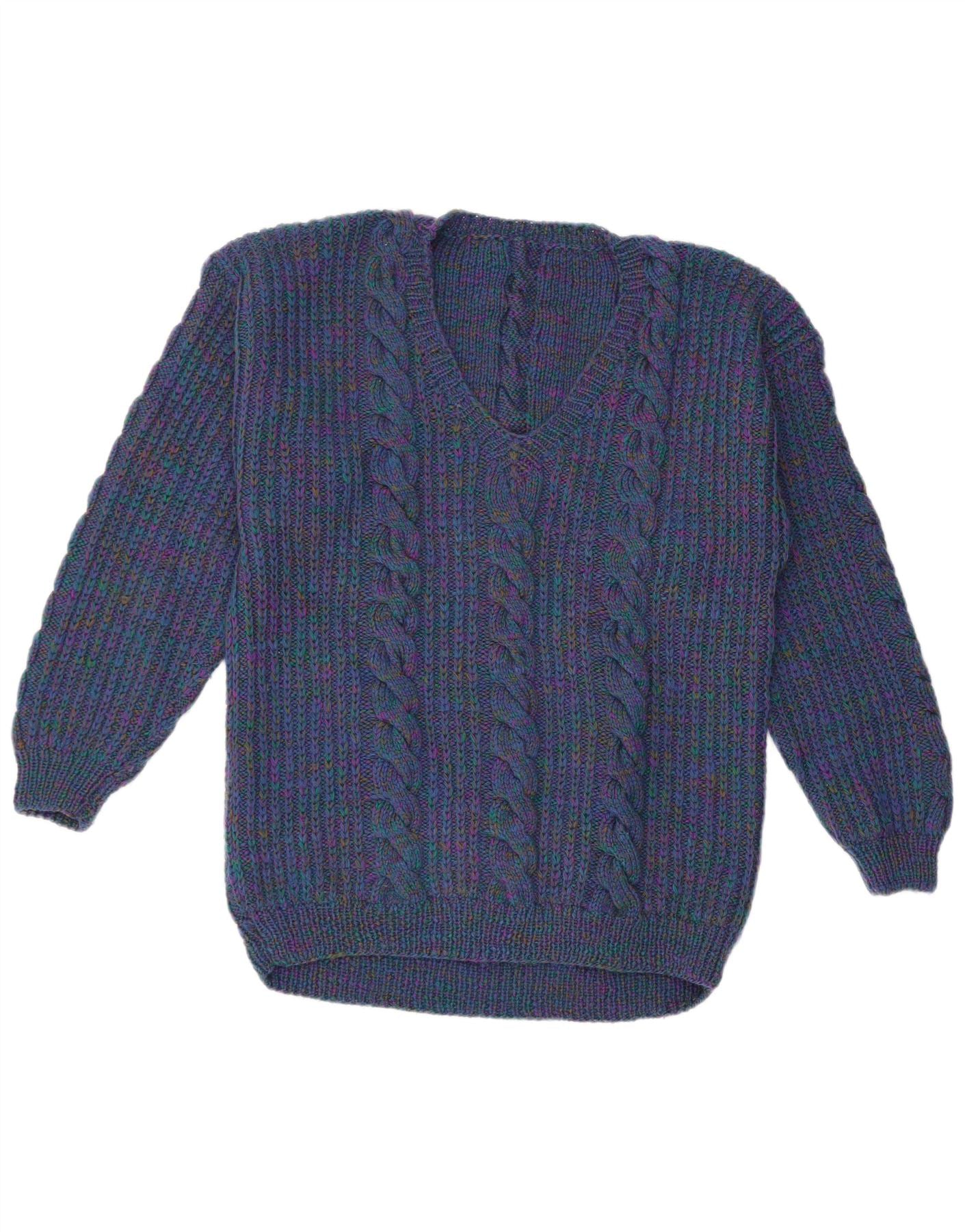 VINTAGE Womens V-Neck Jumper Sweater UK 14 Large Navy Blue Flecked