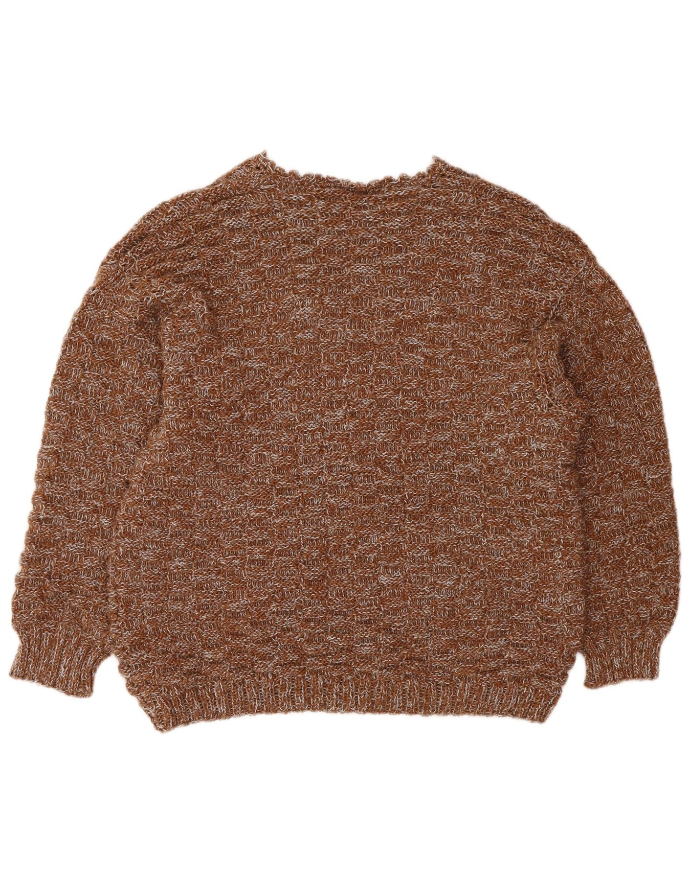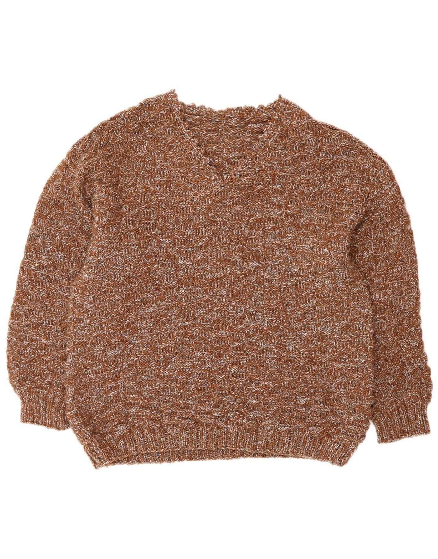 VINTAGE Womens V-Neck Jumper Sweater UK 16 Large Brown Flecked