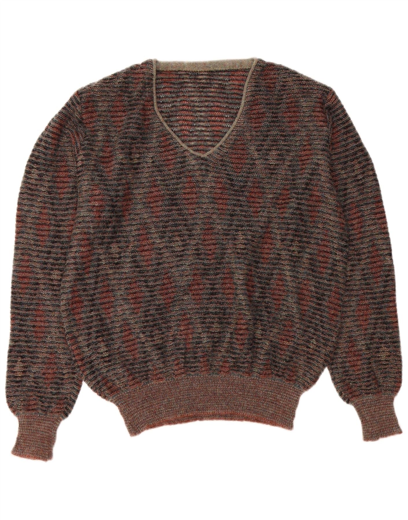 VINTAGE Womens V-Neck Jumper Sweater UK 16 Large Multicoloured