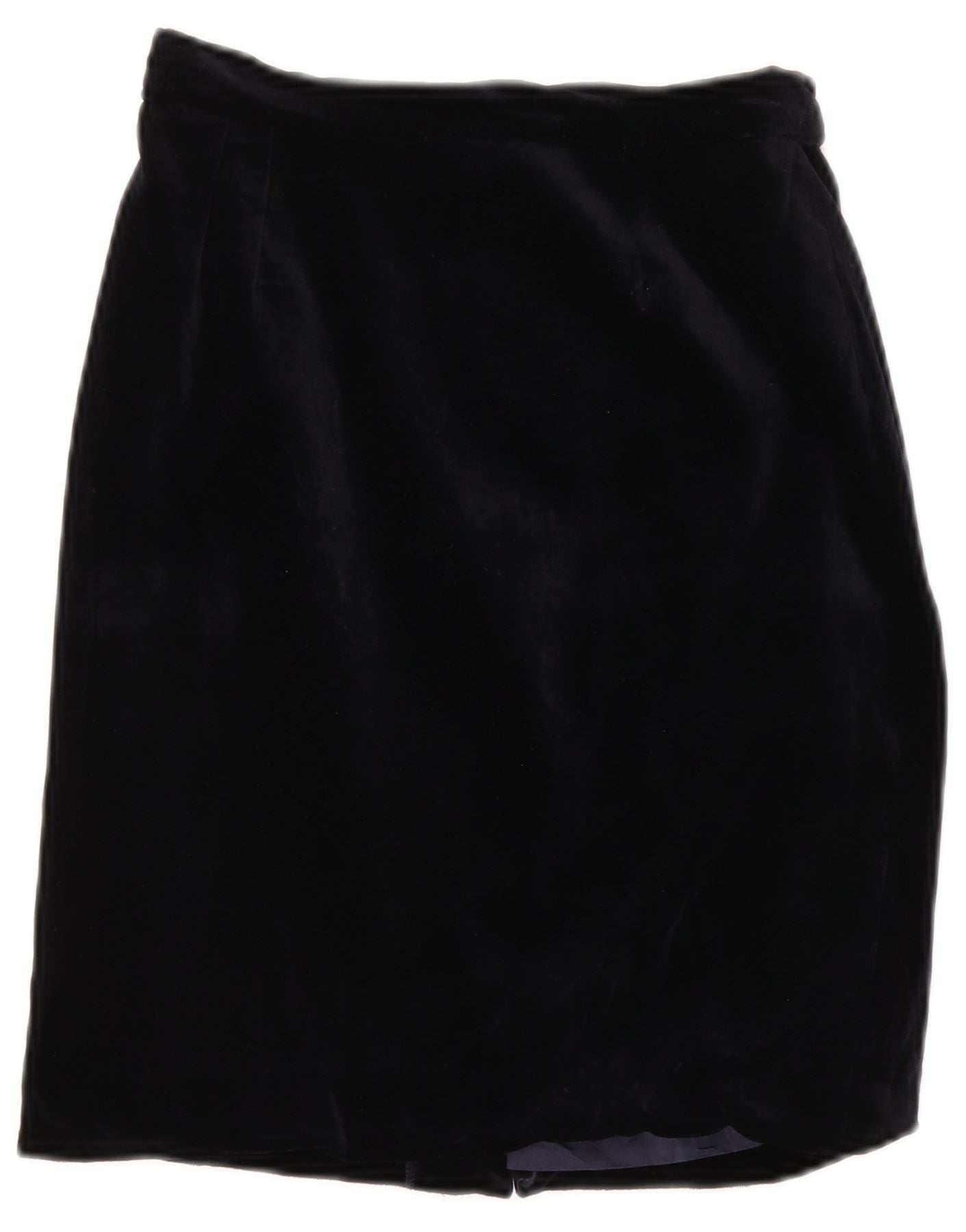 VINTAGE Womens Velvet High Waist Pencil Skirt IT 42 Medium W26 Navy Blue