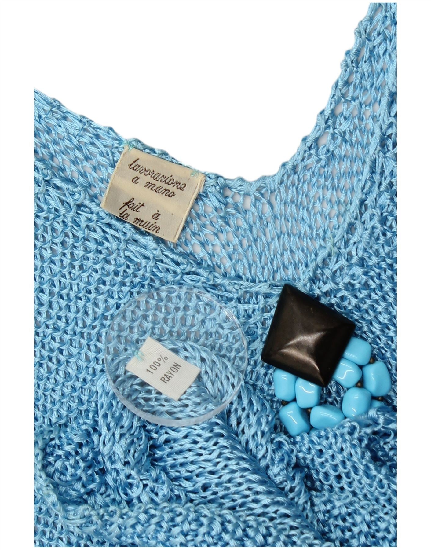 Vintage Womens Vest Tank Top UK 10 Small Blue Rayon