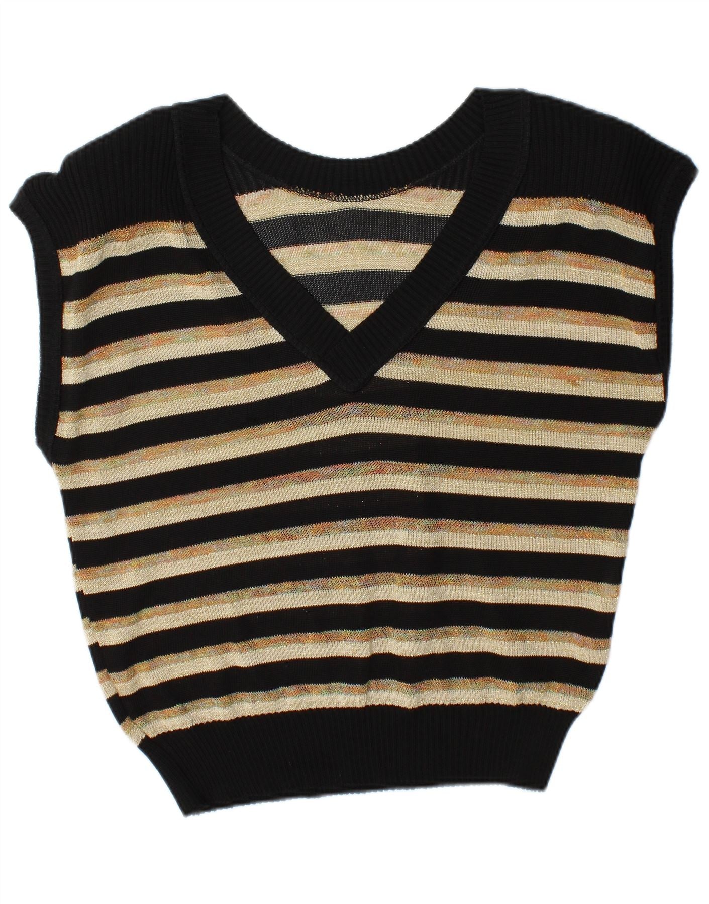 VINTAGE Womens Vest Tank Top UK 16 Large Black Striped Cotton