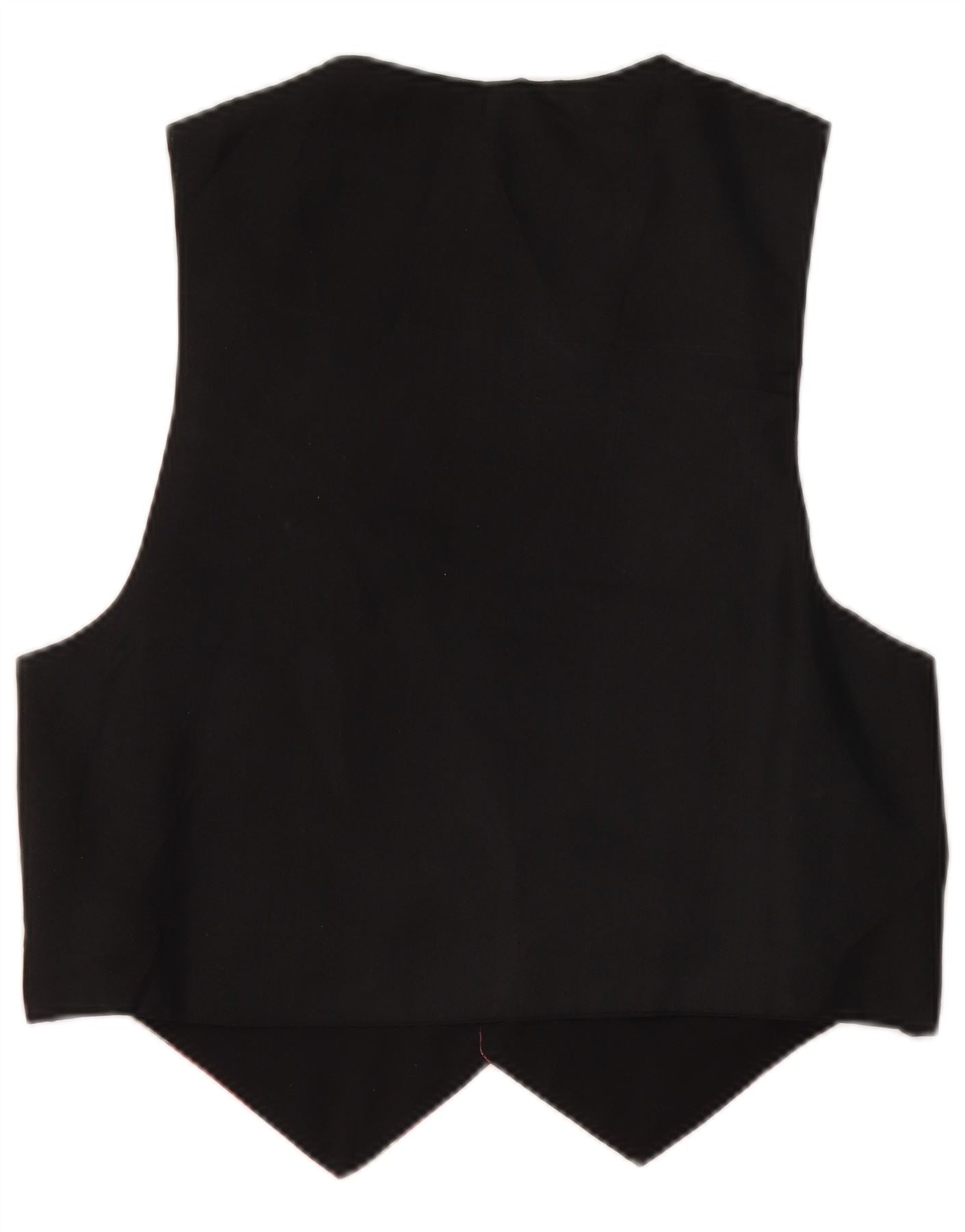 VINTAGE Womens Waistcoat UK 14 Medium Black Floral Polyester