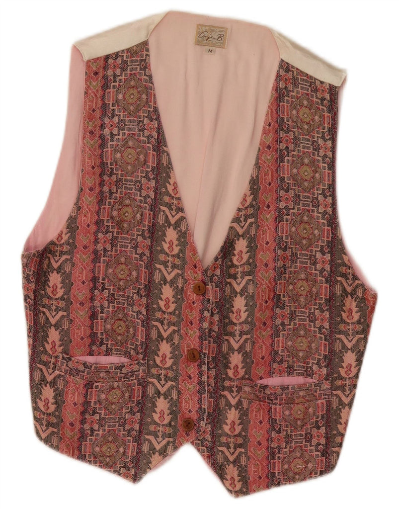VINTAGE Womens Waistcoat UK 14 Medium Multicoloured Geometric Viscose