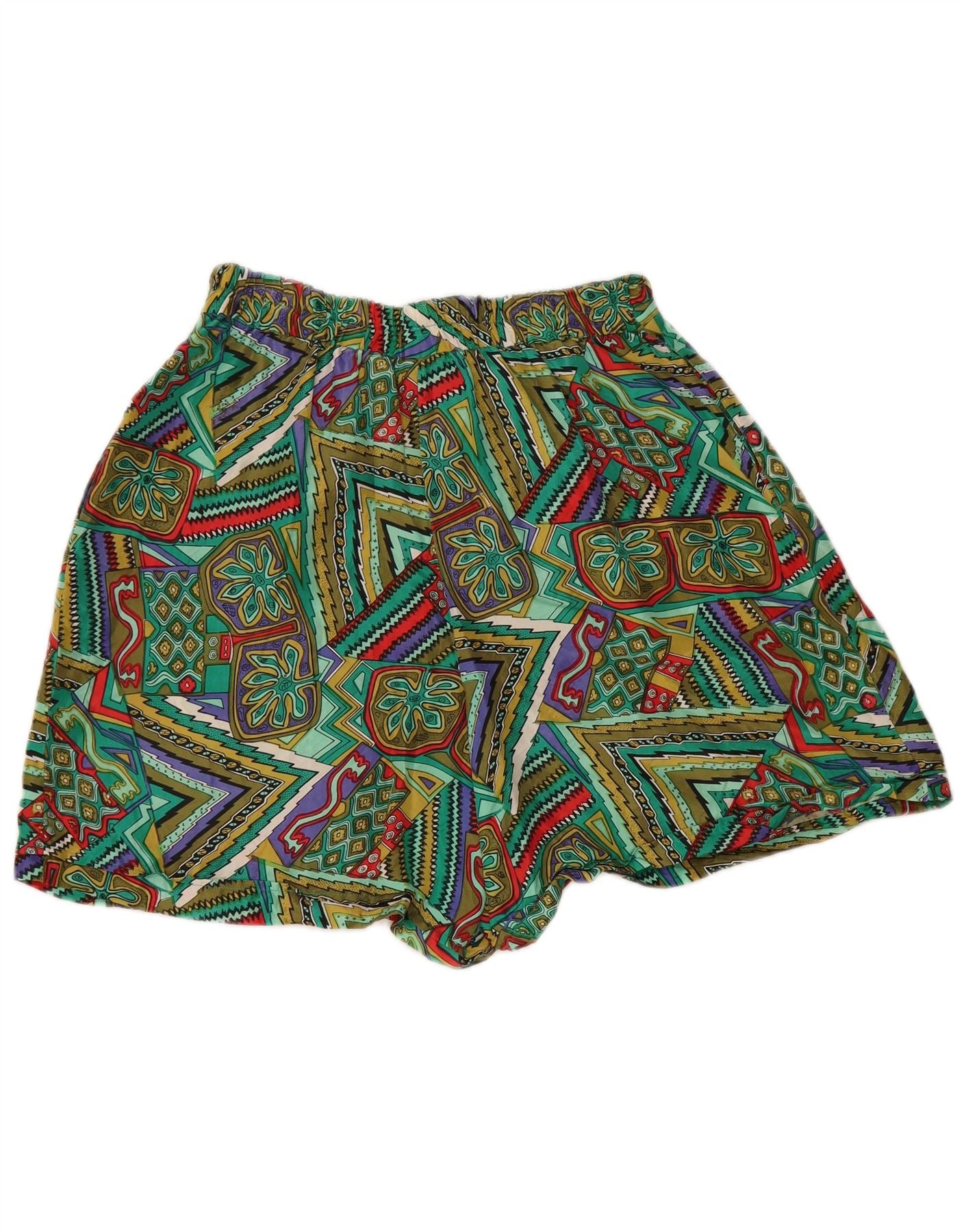 Vintage Womens Wide Leg Casual Shorts Medium W28 Green Patchwork Silk