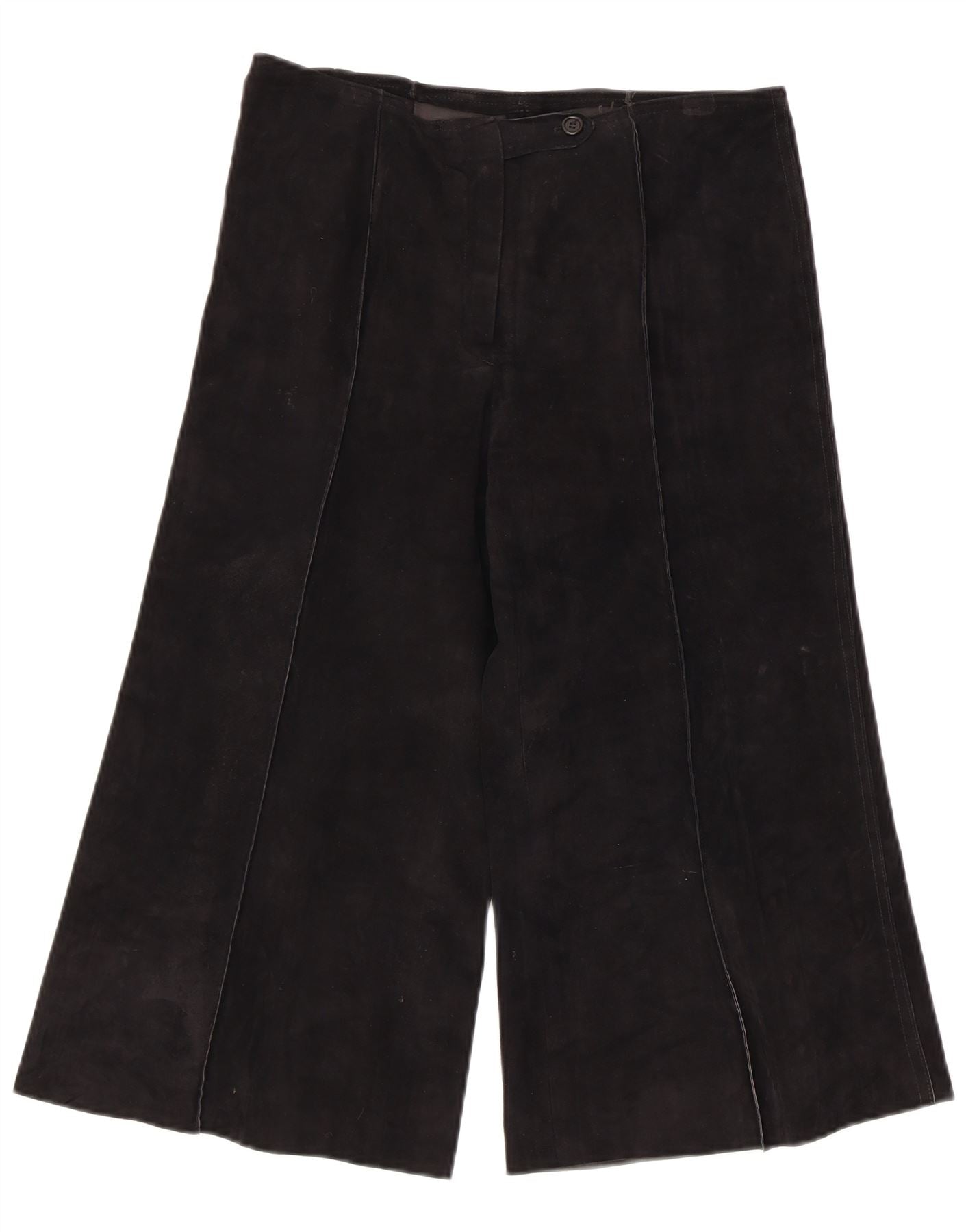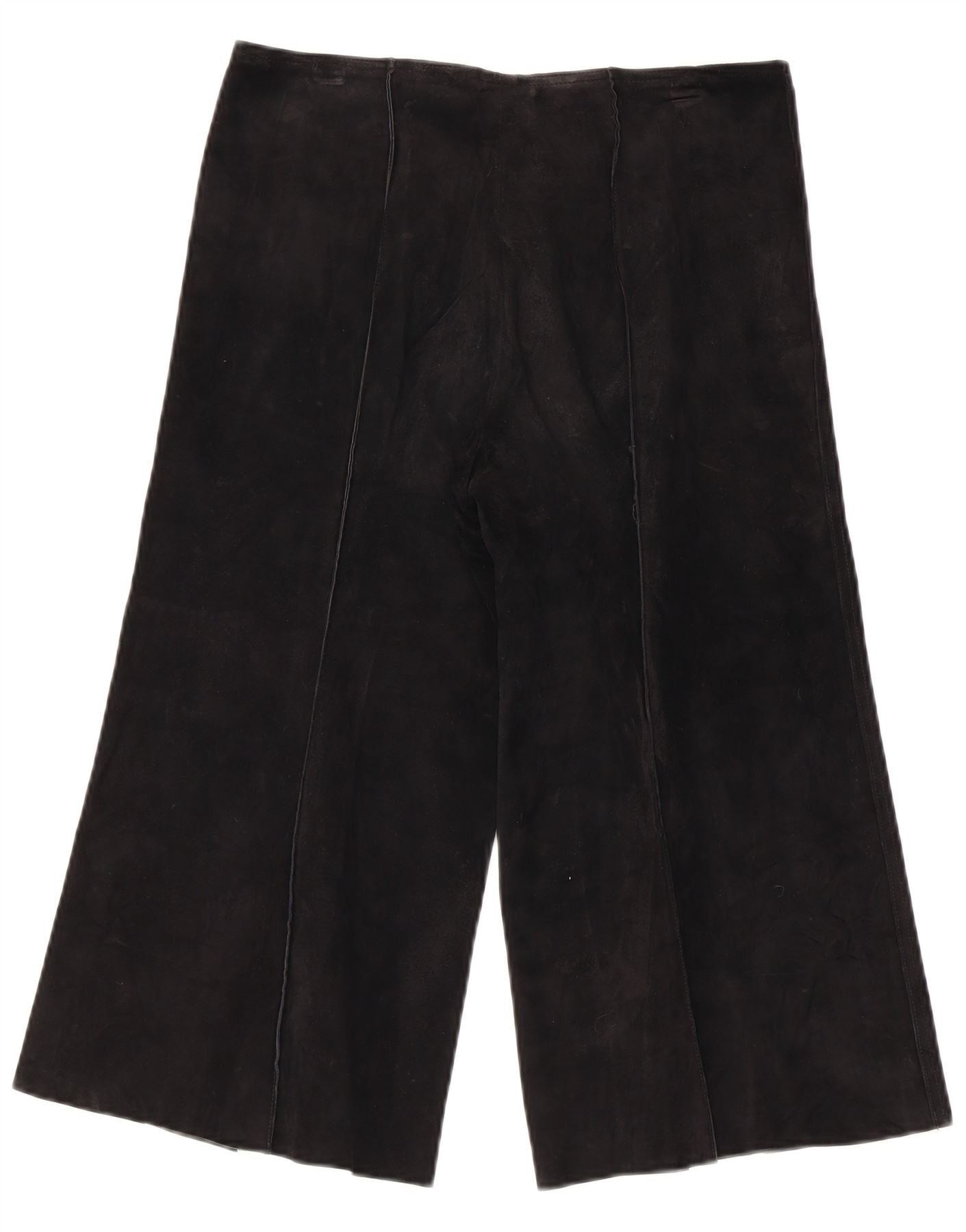 VINTAGE Womens Wide Leg Suede Capri Trousers W30 L19 Black