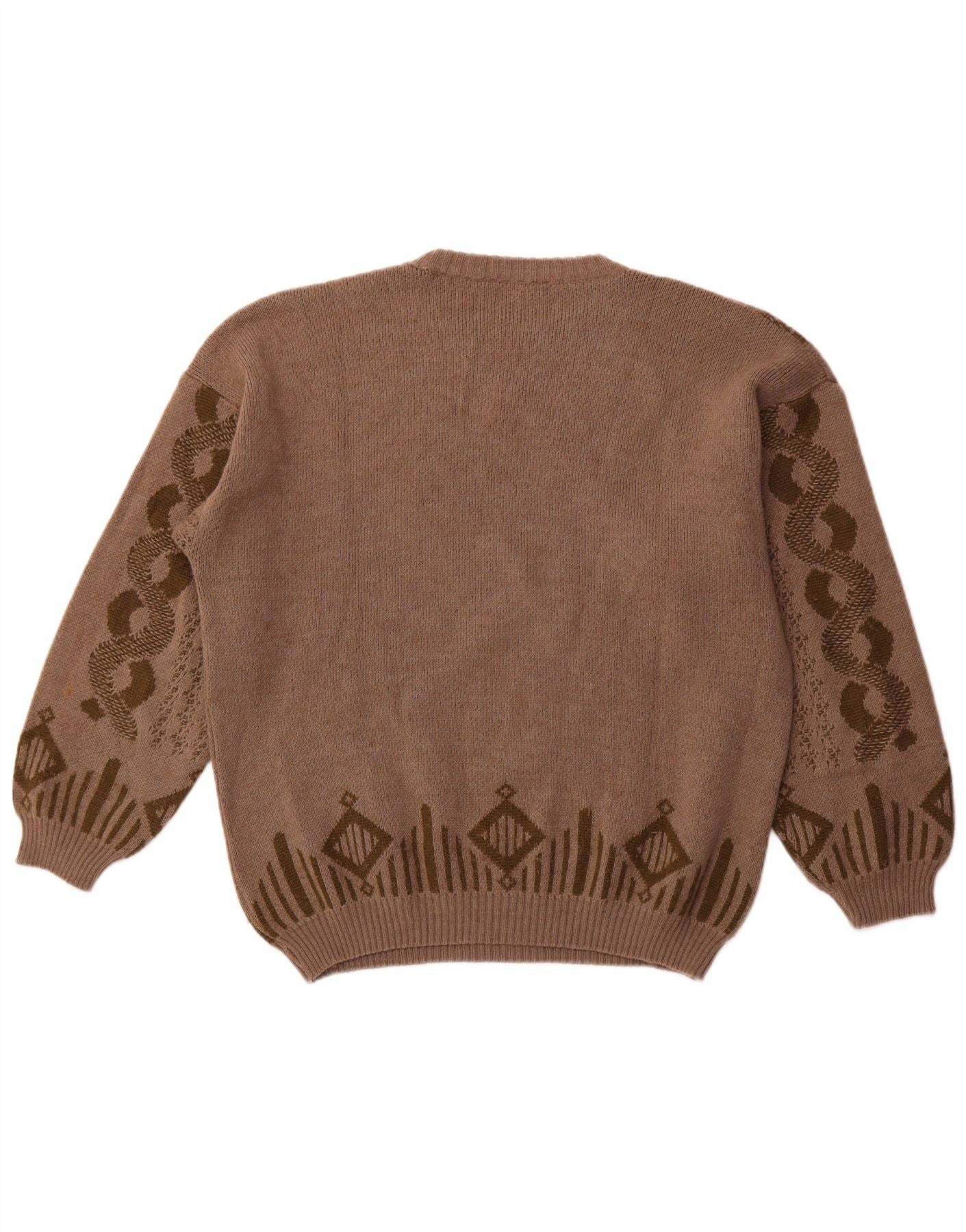 VOGUE Womens Oversized Crew Neck Jumper Sweater UK 18 XL Brown Geometric