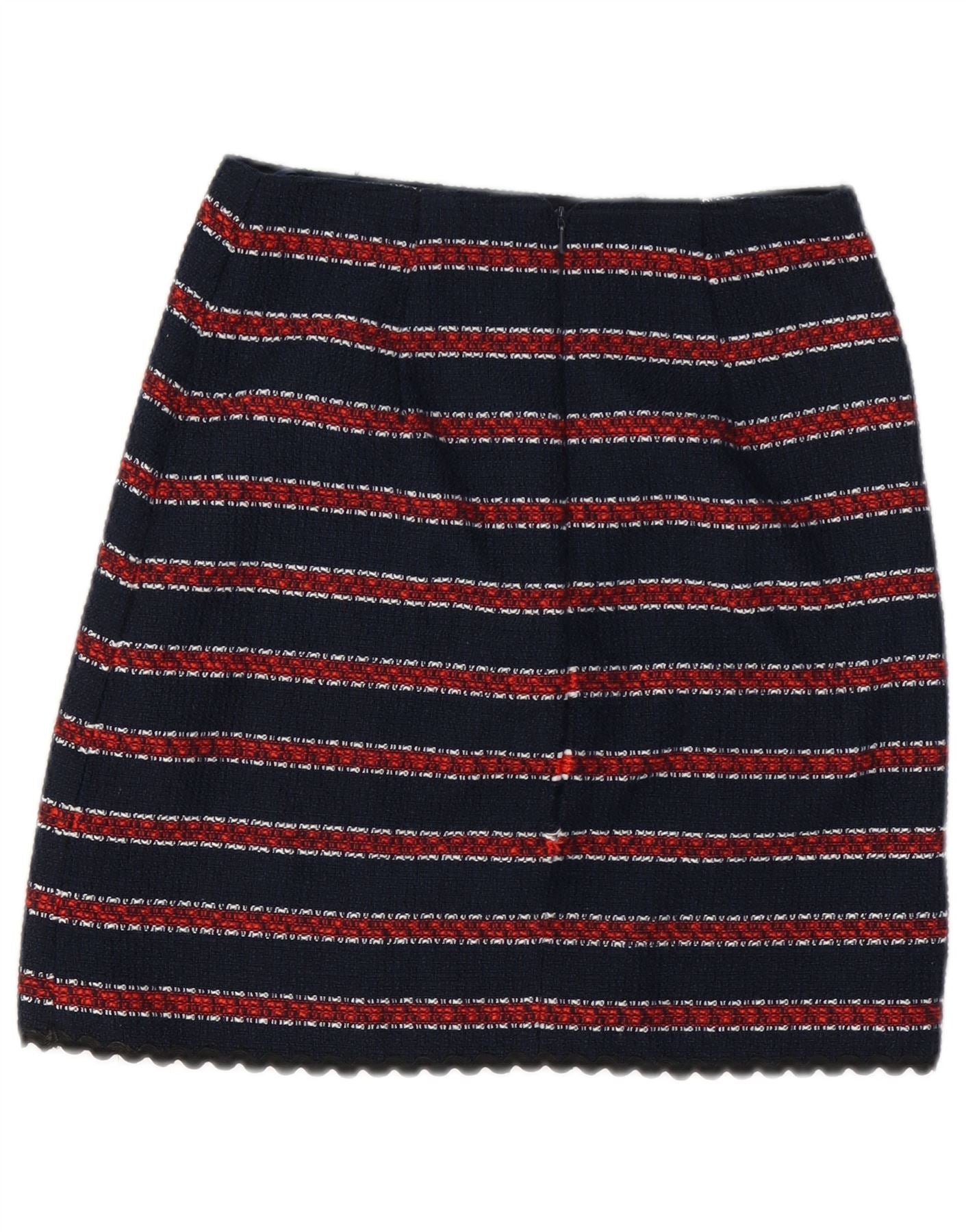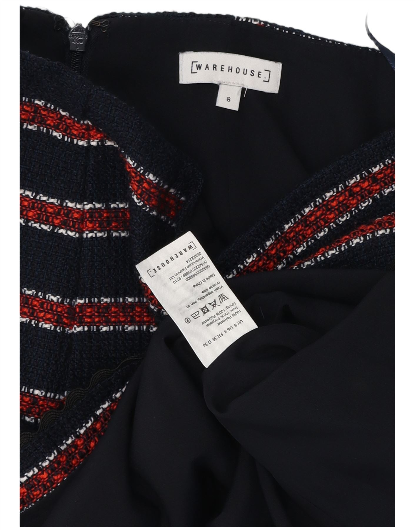WAREHOUSE Womens Mini Skirt UK 8 Small W26 Navy Blue Striped Polyester