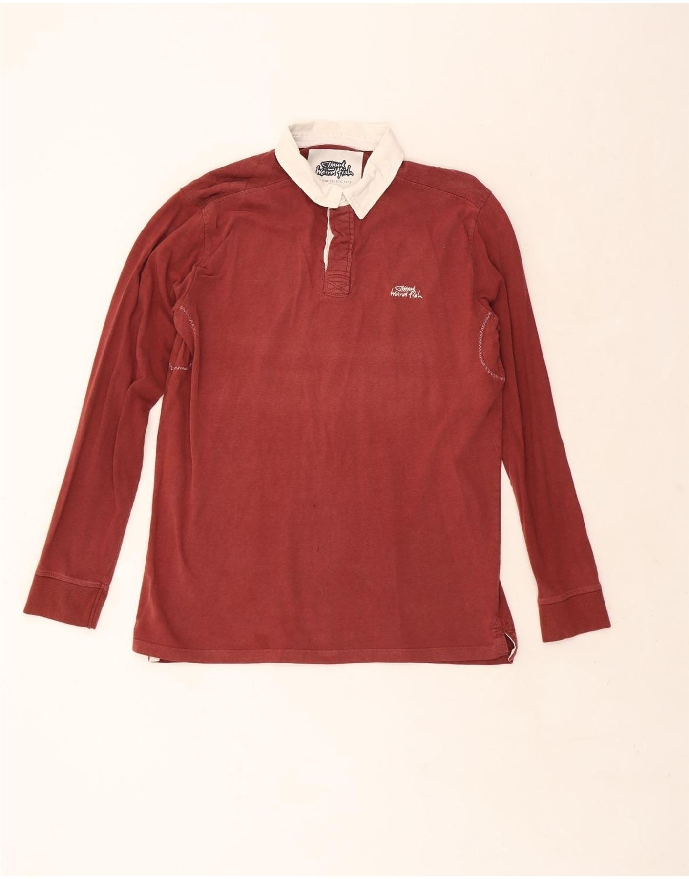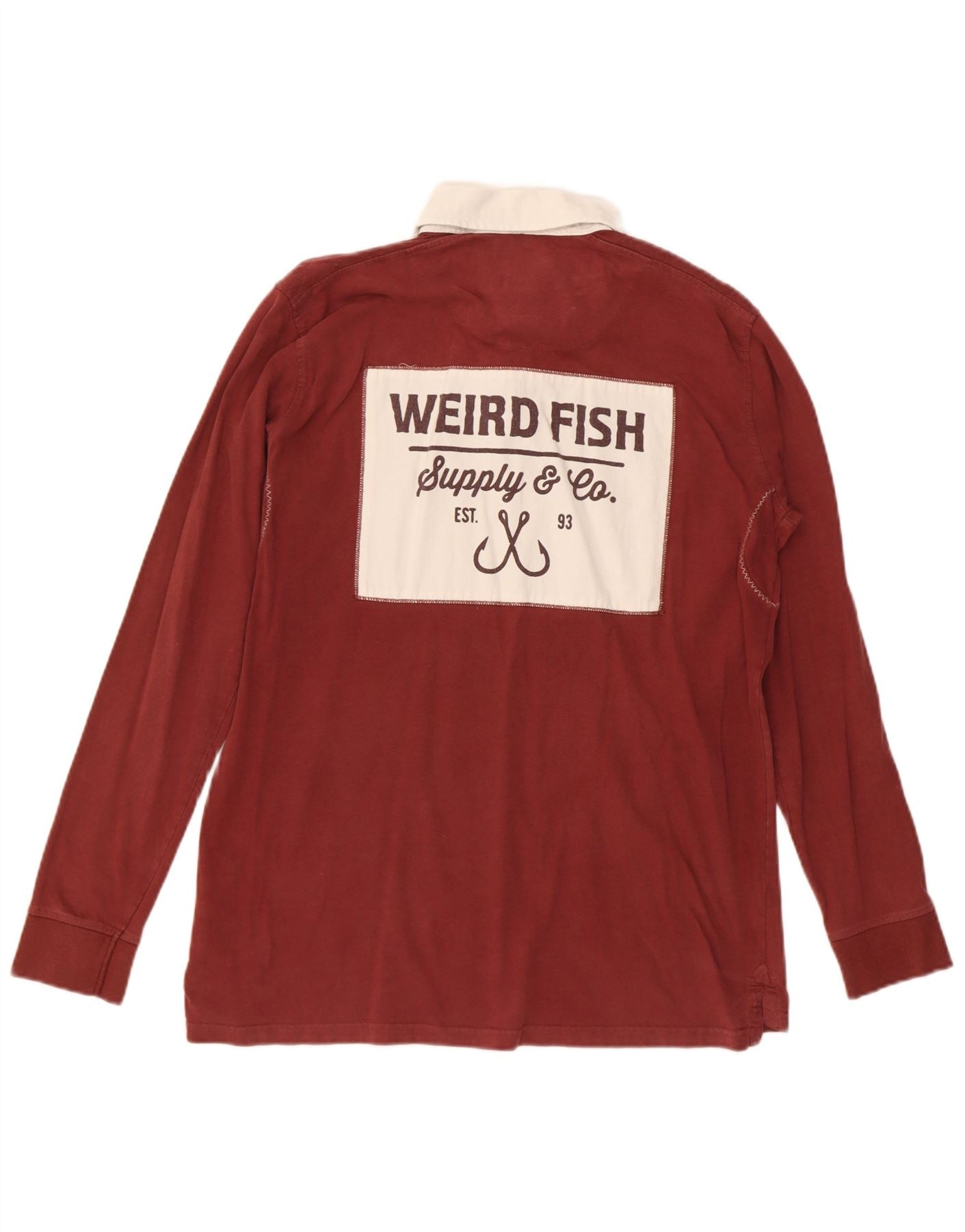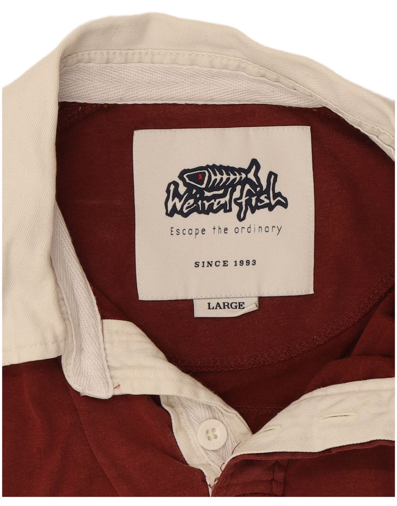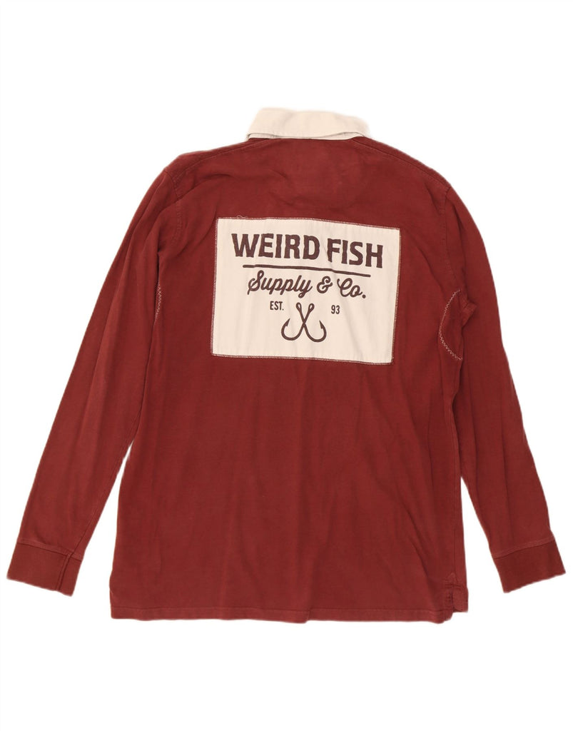 WEIRD FISH Mens Graphic Long Sleeve Rugby Polo Shirt Large Maroon Cotton