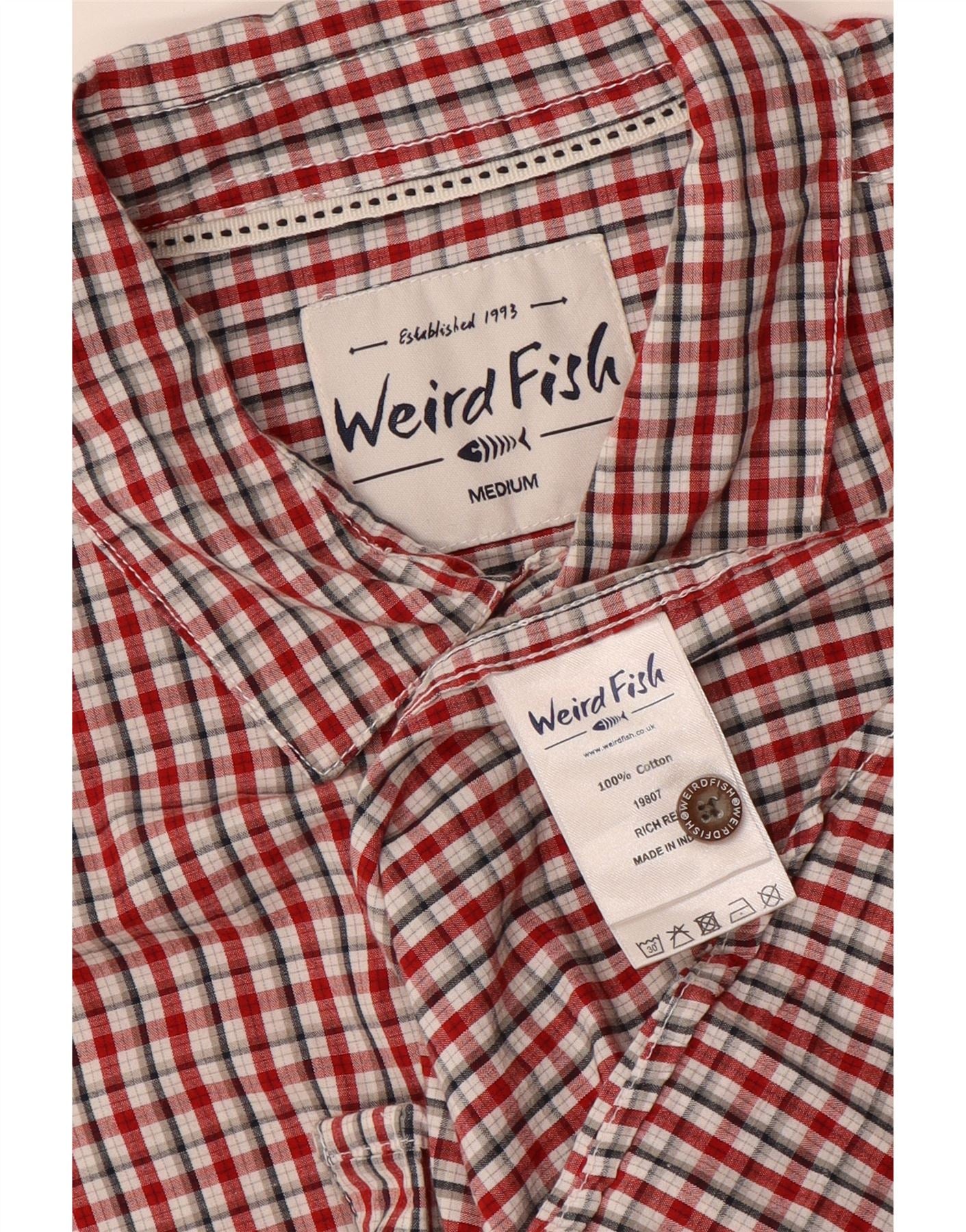WEIRD FISH Mens Short Sleeve Shirt Medium Red Check Cotton