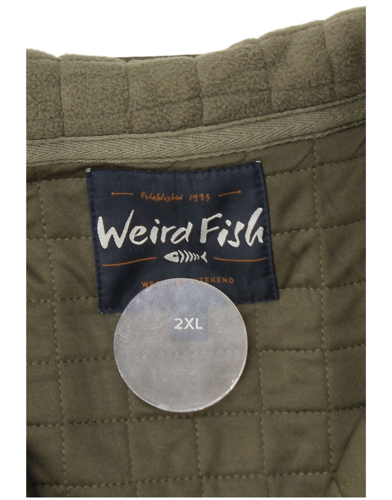 WEIRD FISH Mens Zip Neck Fleece Jumper 2XL Green Polyester