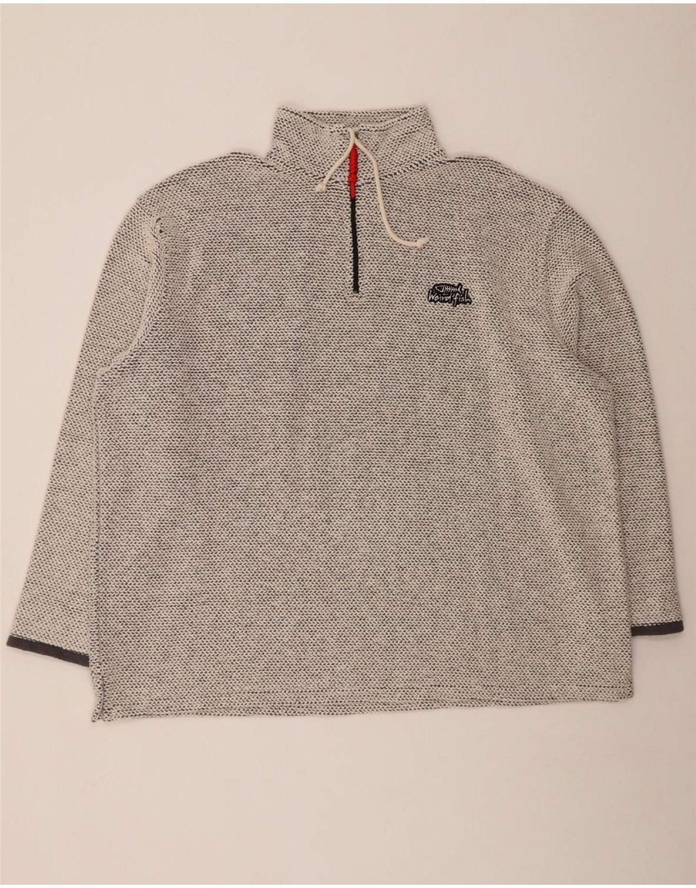 WEIRD FISH Mens Zip Neck Sweatshirt Jumper 3XL Grey Cotton