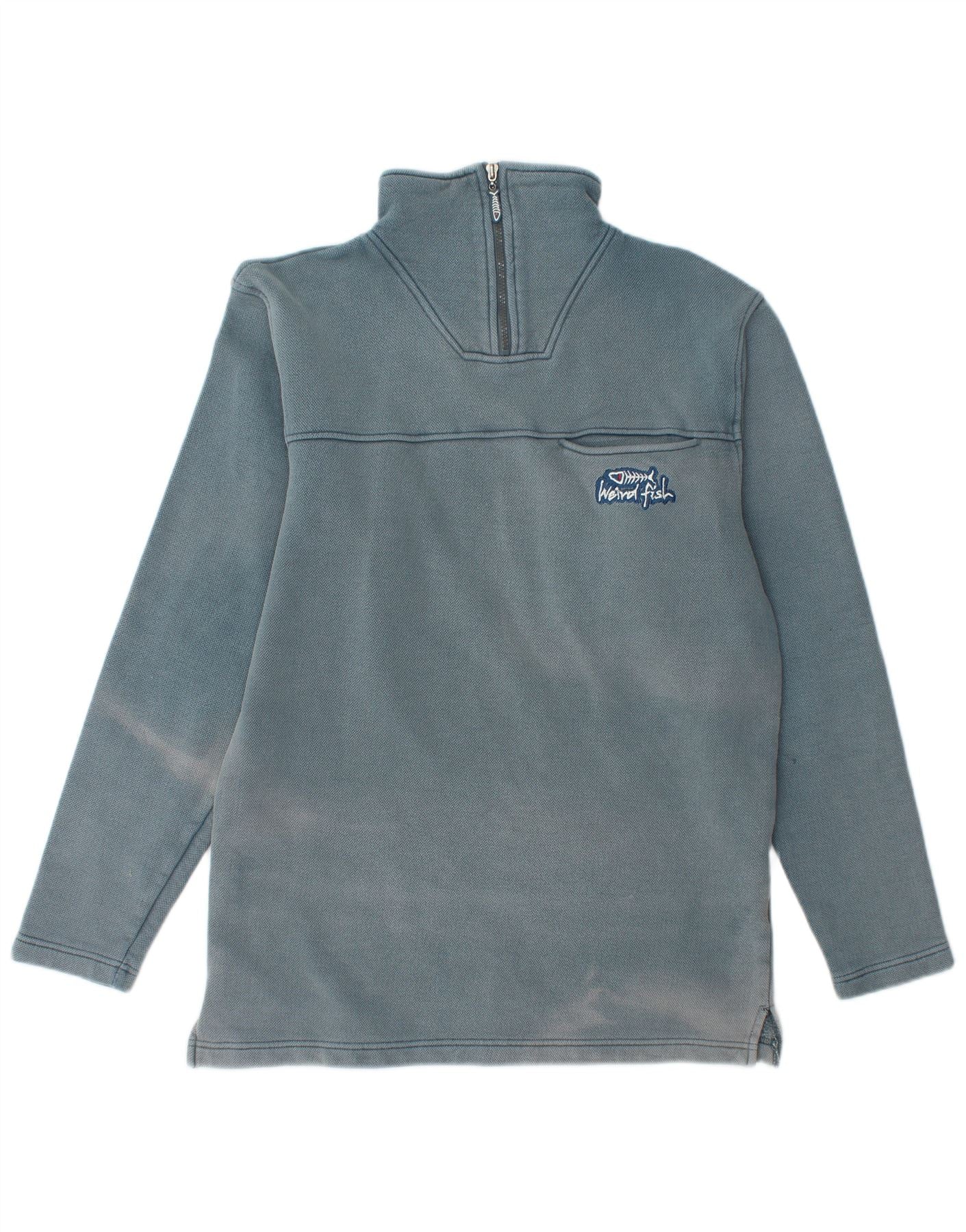 WEIRD FISH Mens Zip Neck Sweatshirt Jumper Small Blue Cotton