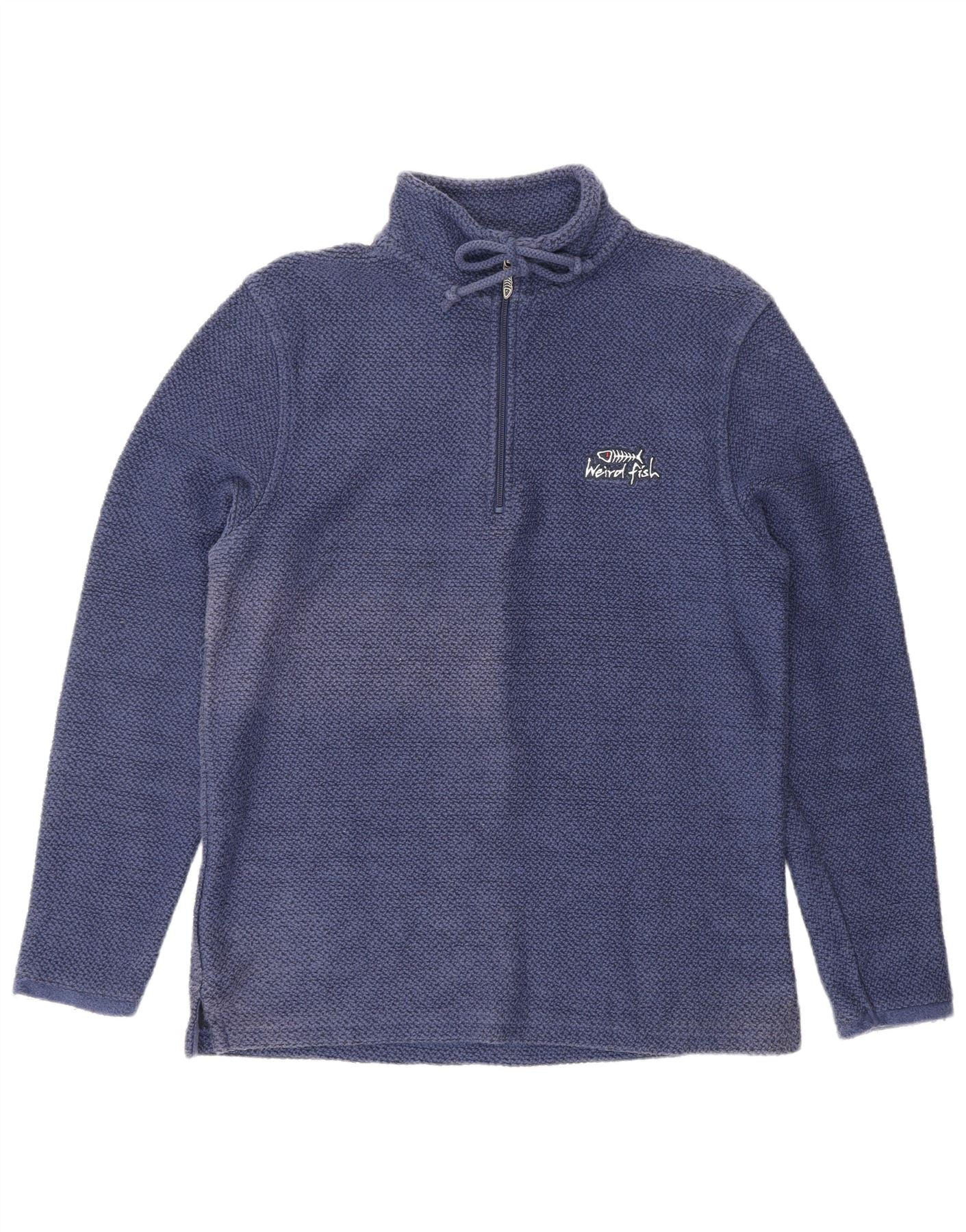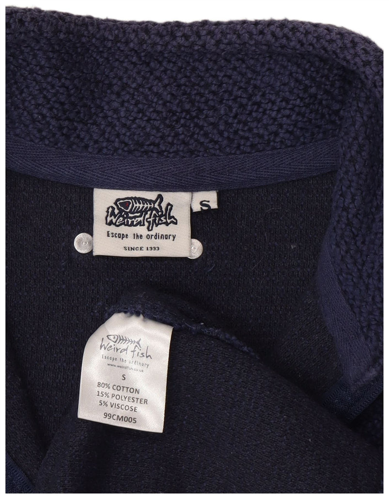WEIRD FISH Mens Zip Neck Sweatshirt Jumper Small Navy Blue Cotton