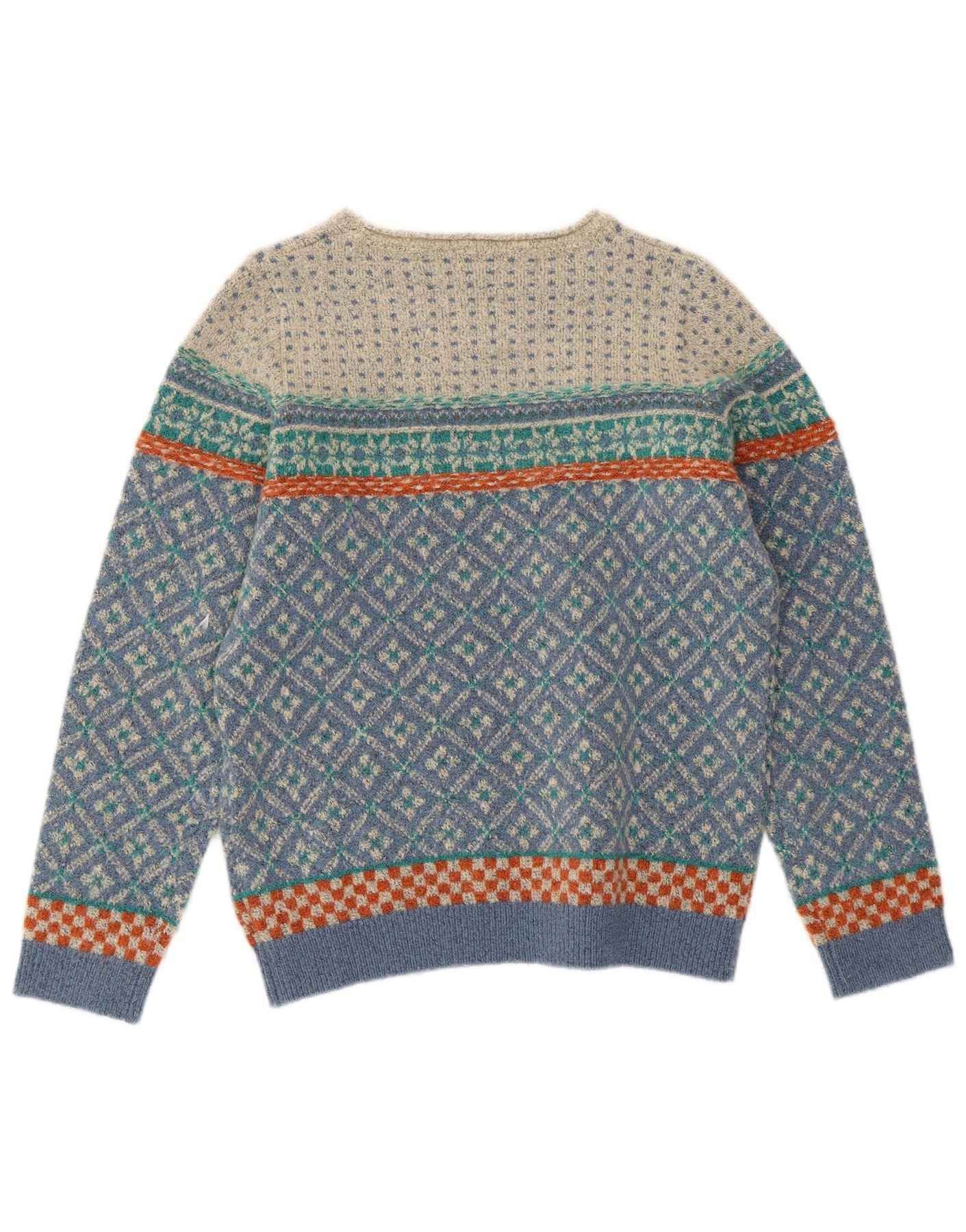 WEIRD FISH Womens Boat Neck Jumper Sweater UK 12 Medium Blue Fair Isle