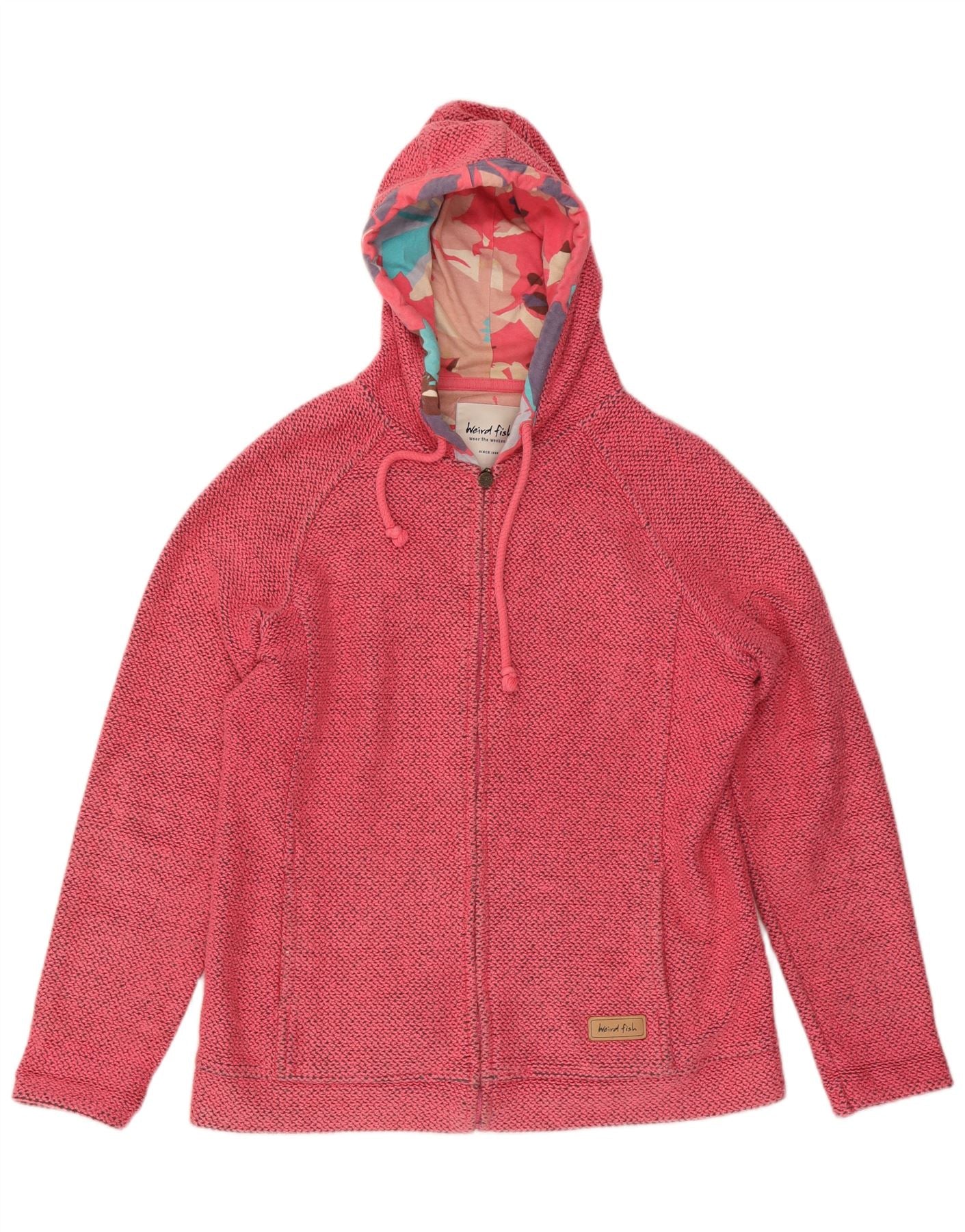 WEIRD FISH Womens Zip Hoodie Sweater UK 16 Large Pink Cotton