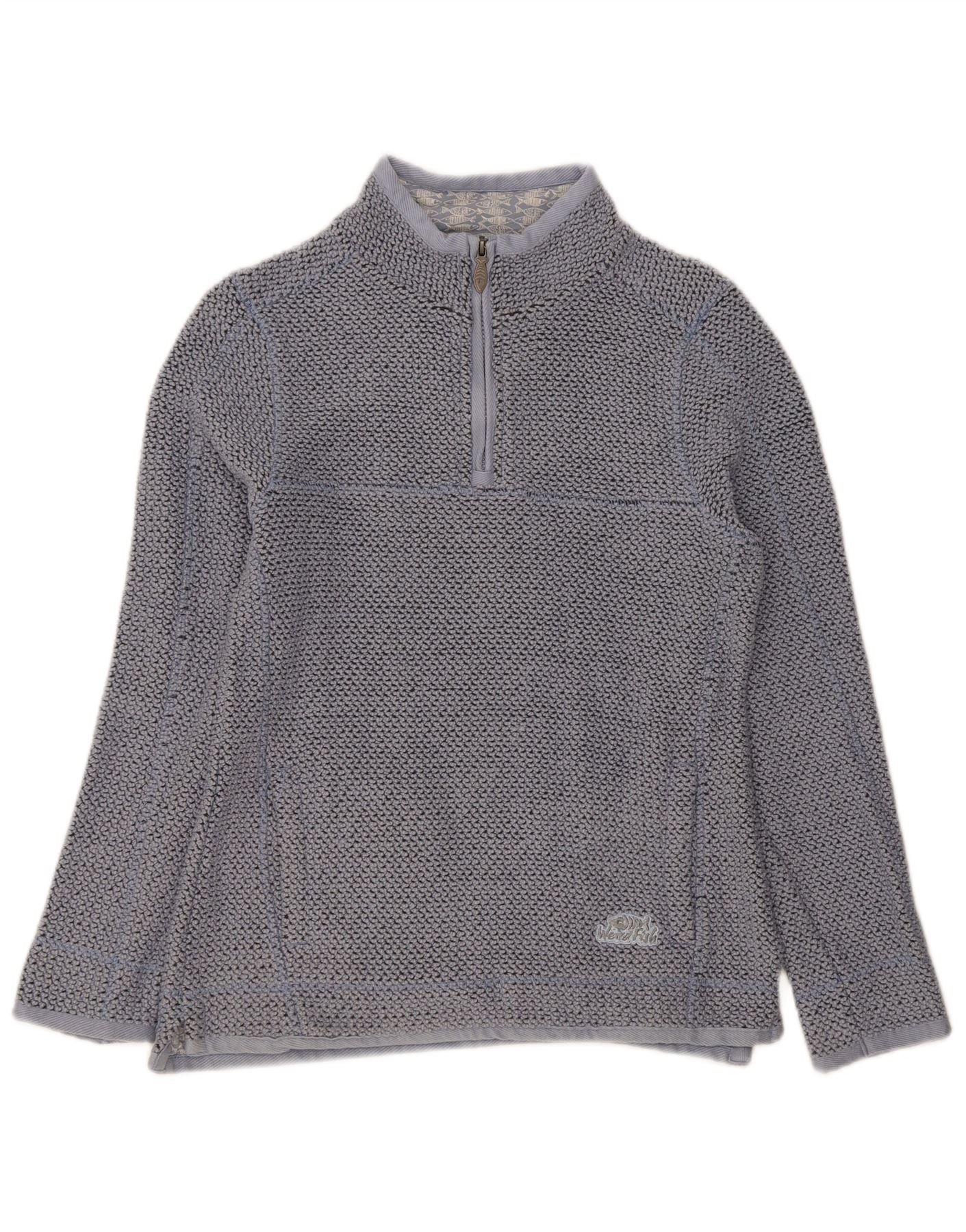 WEIRD FISH Womens Zip Neck Jumper Sweater UK 12 Medium Blue Cotton