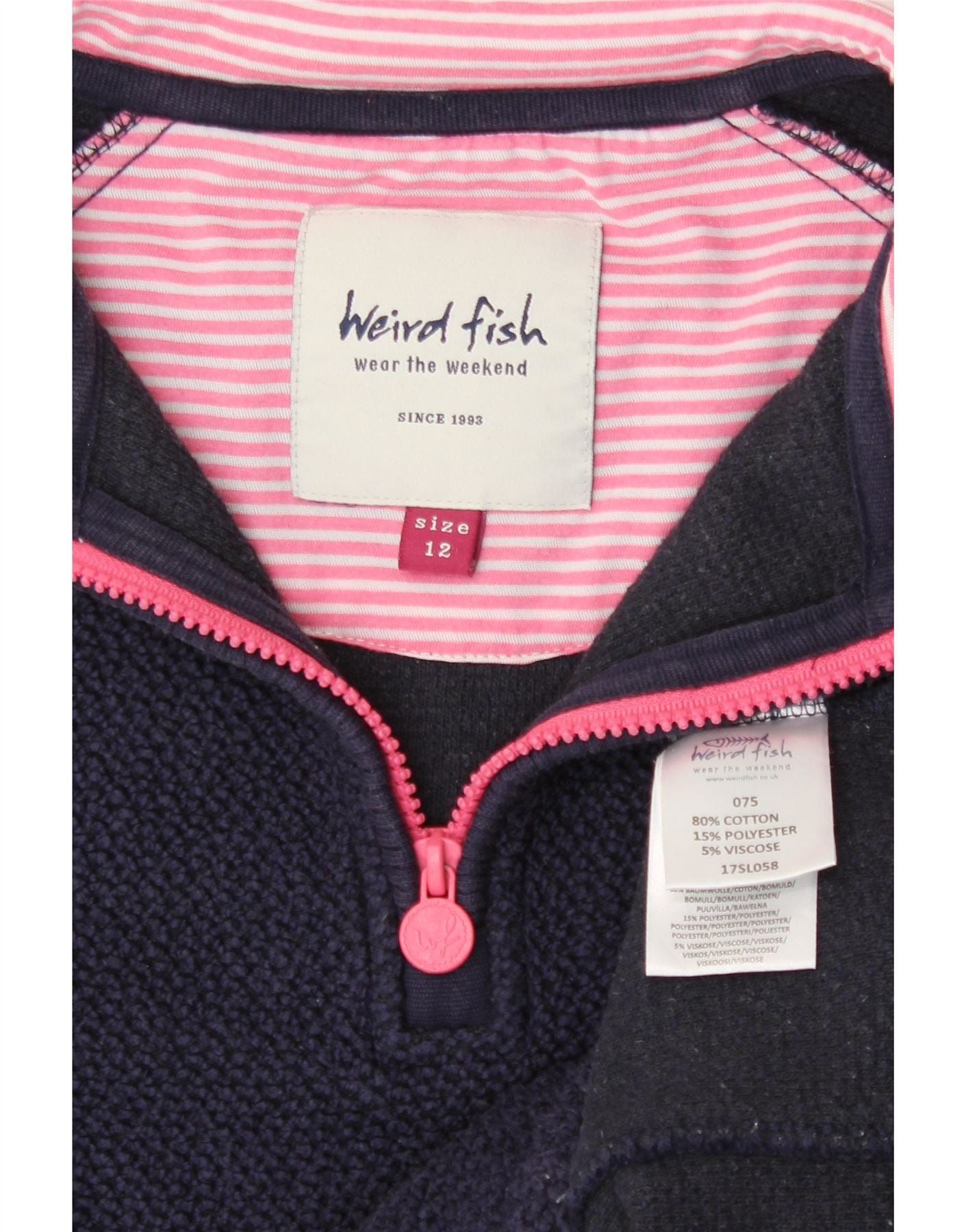 Home > Women's > Depop Clothing > WEIRD FISH Womens Zip Neck Sweatshirt Jumper UK 12 Medium Navy Blue Cotton