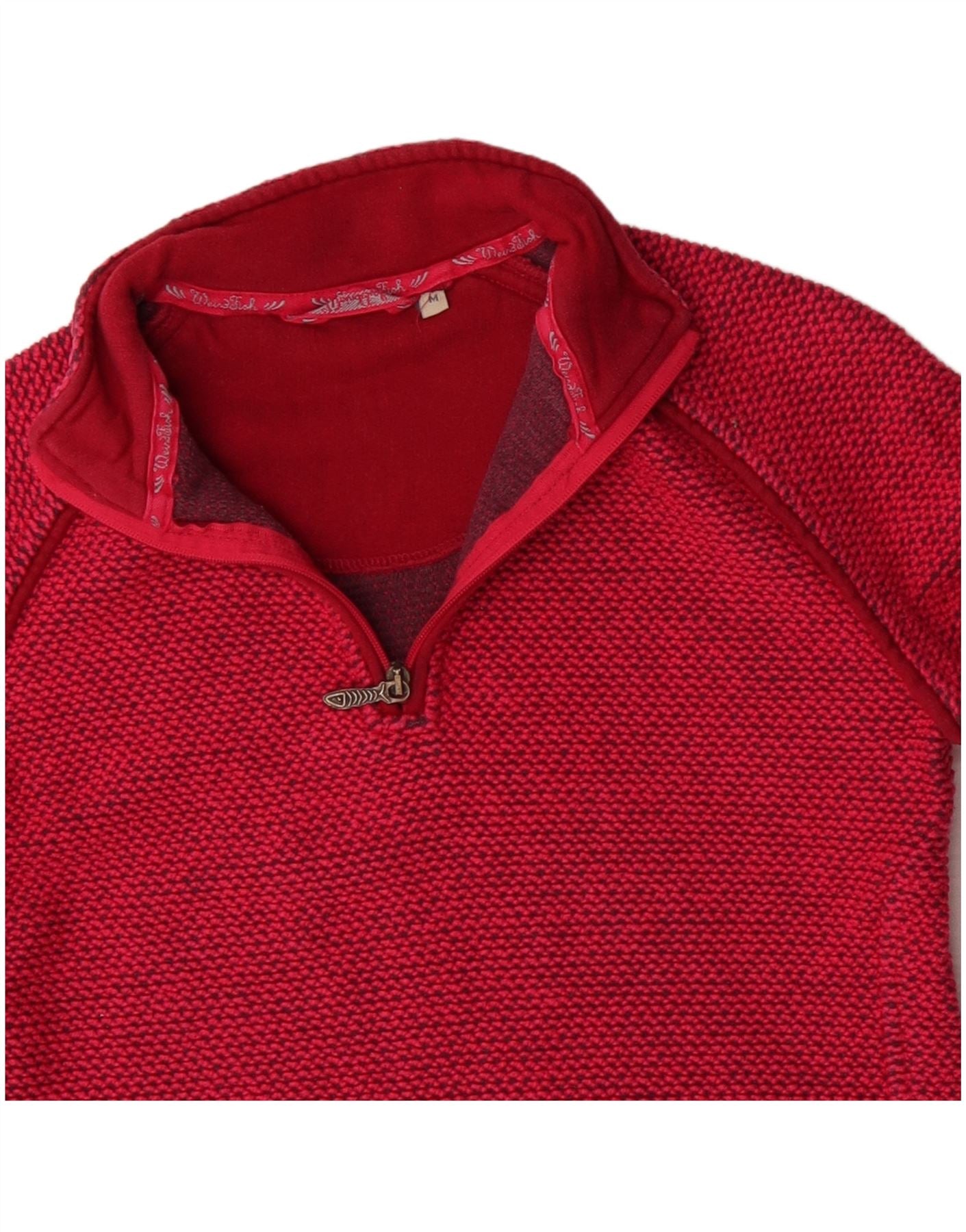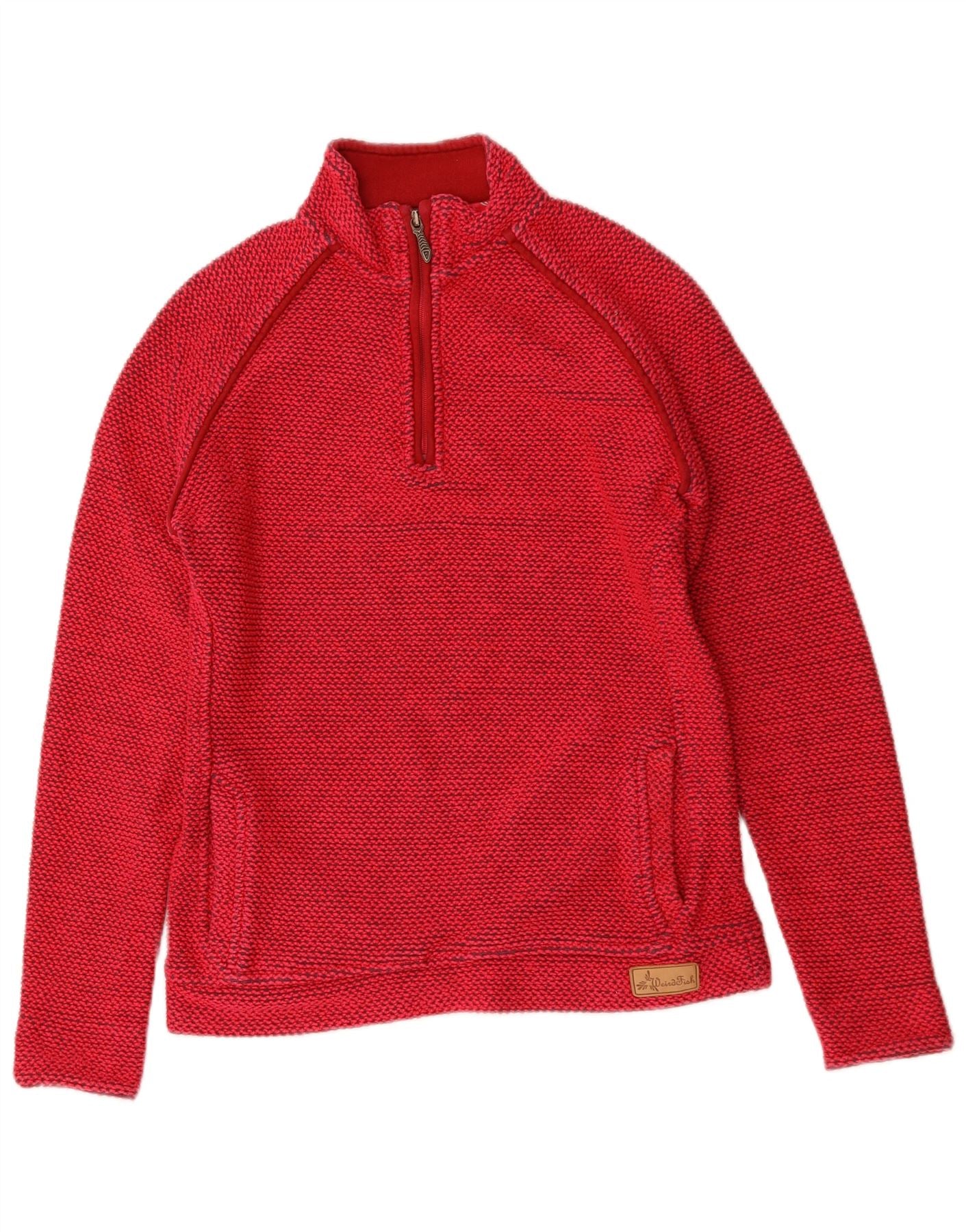 WEIRD FISH Womens Zip Neck Sweatshirt Jumper UK 12 Medium Red