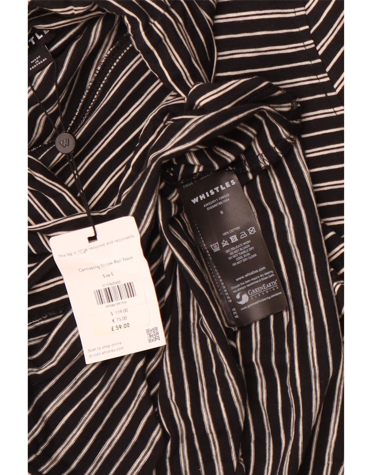 Home > Women's > Depop Clothing > WHISTLES Womens Roll Neck Top Long Sleeve UK 10 Small Black Striped Cotton