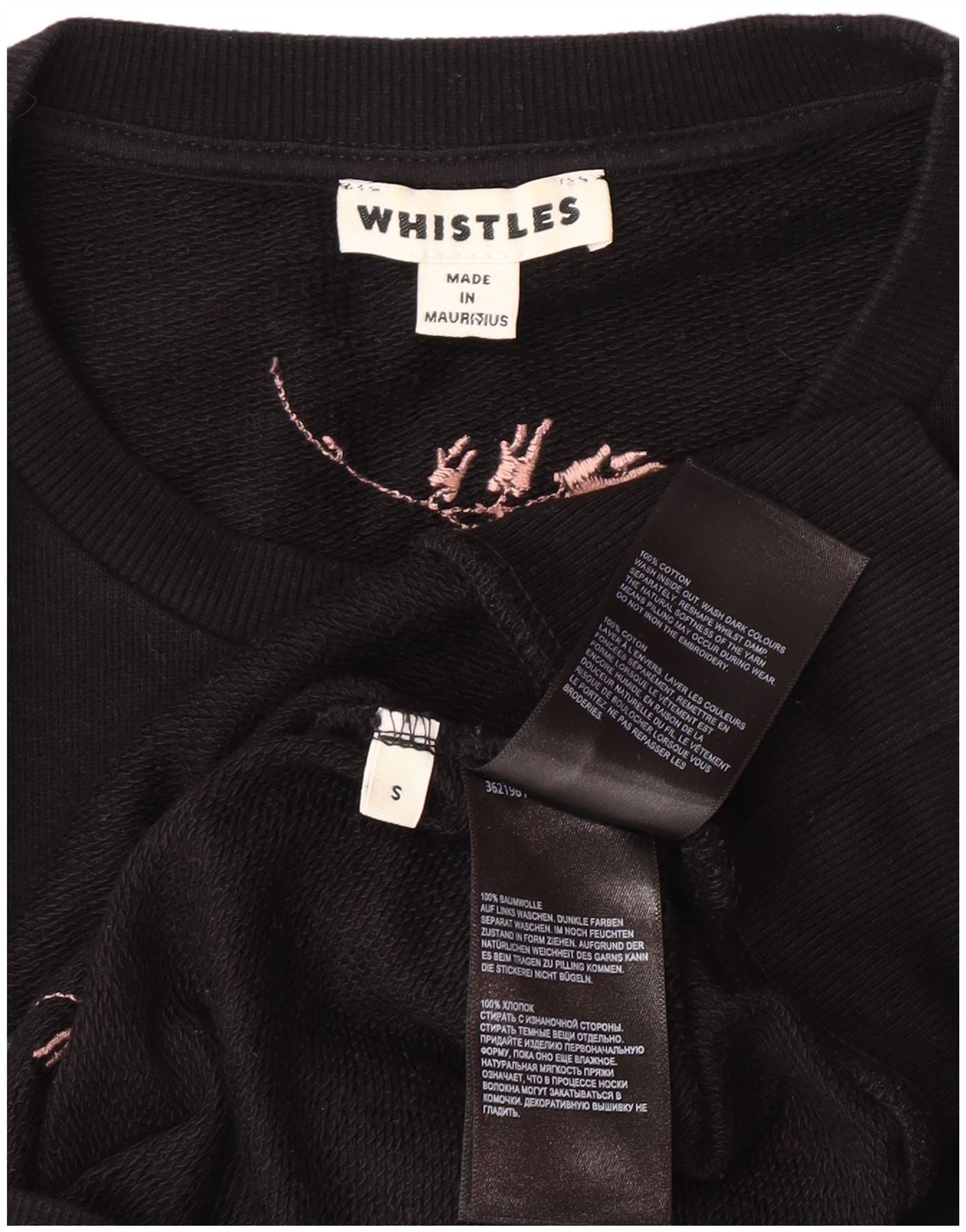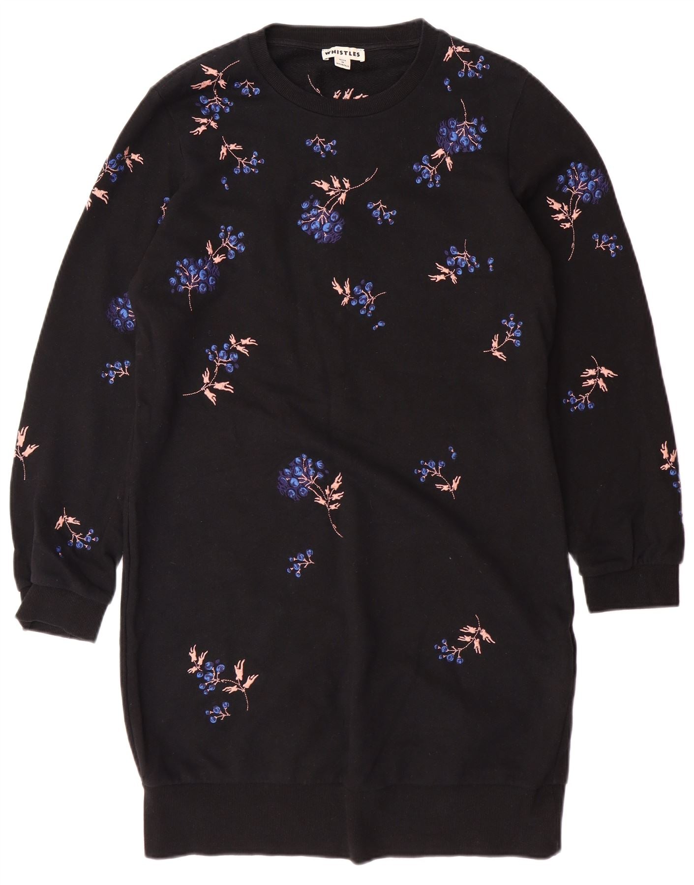 WHISTLES Womens Sweatshirt Jumper Dress UK 10 Small Black Floral Cotton