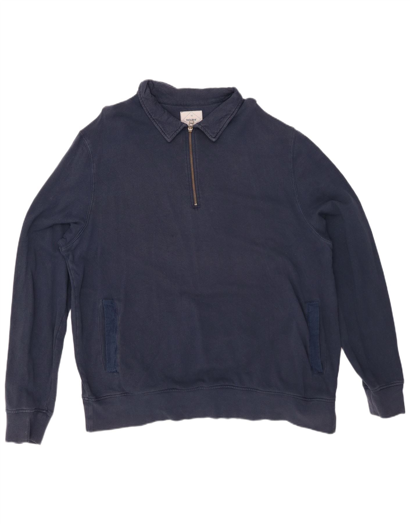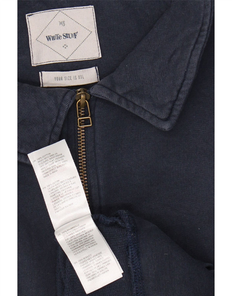 WHITE STUFF Mens Polo Neck Sweatshirt Jumper 2XL Navy Blue Cotton