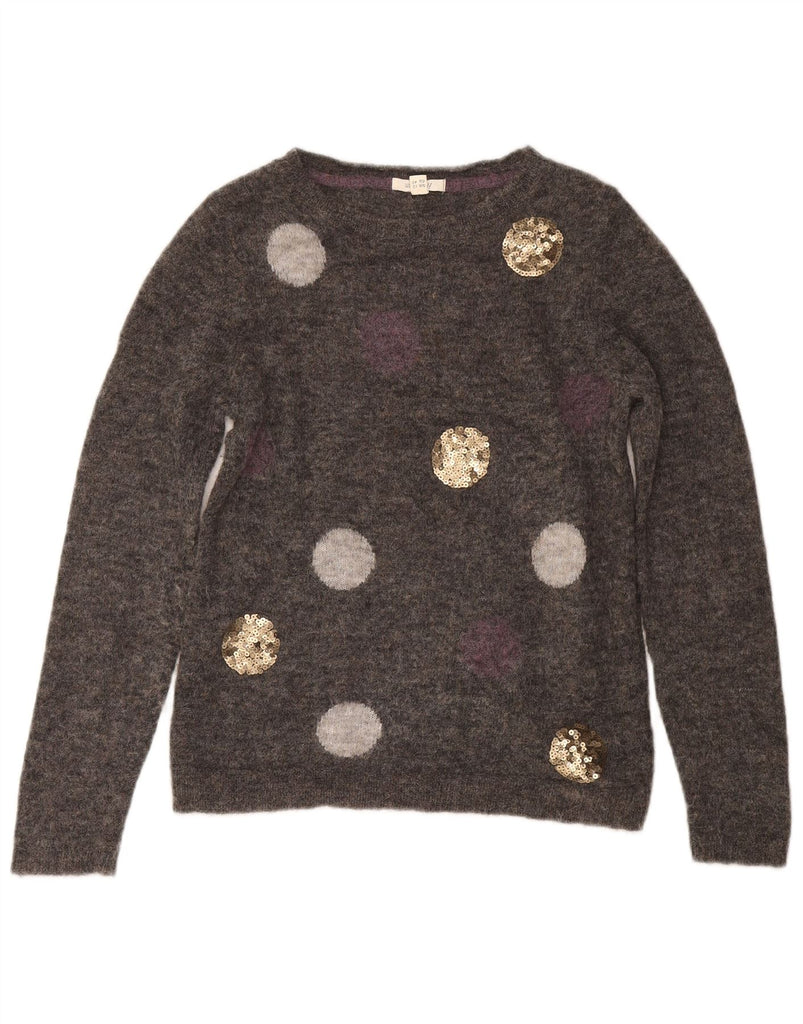 WHITE STUFF Womens Boat Neck Jumper Sweater UK 12 Medium Grey Geometric