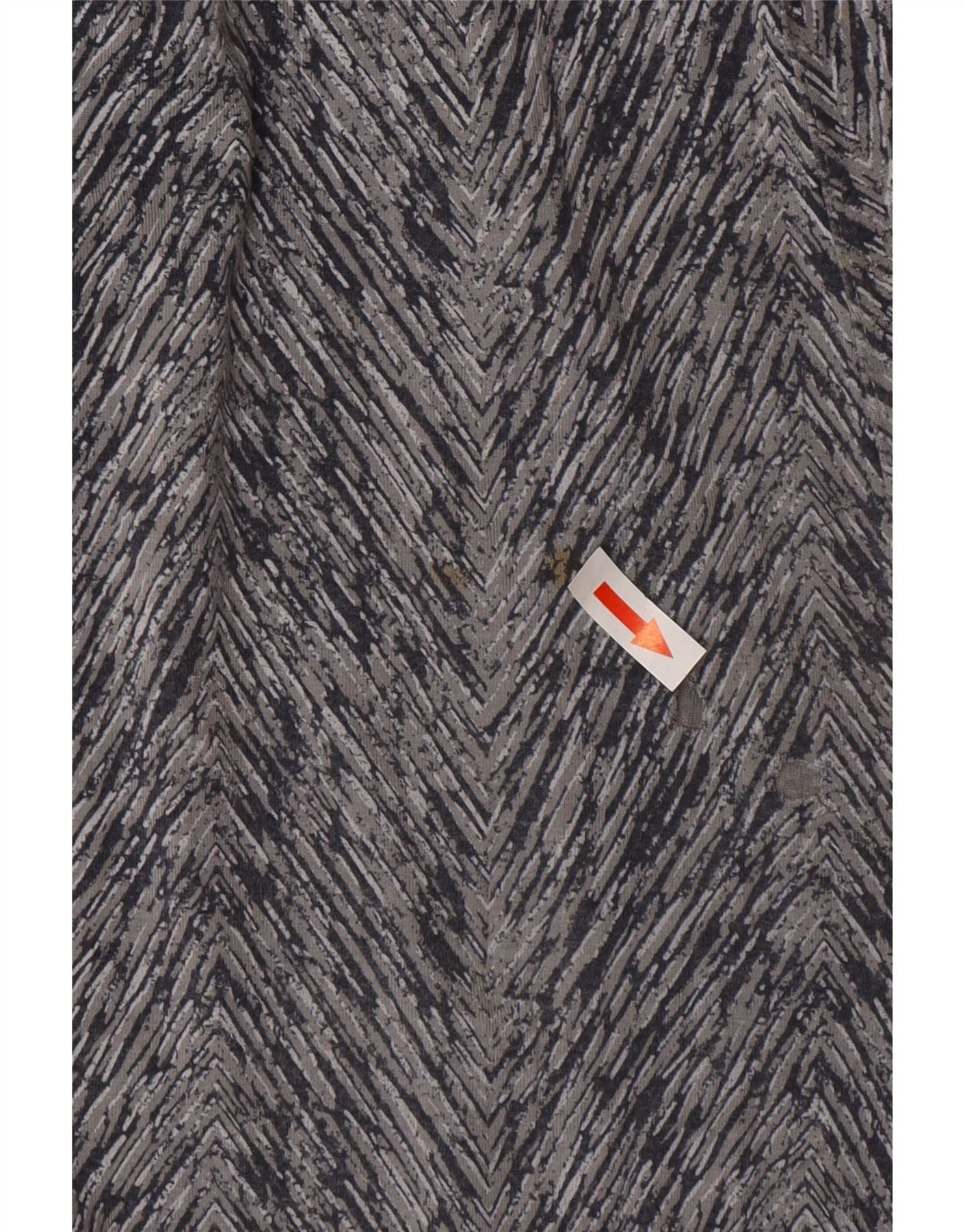 - AI Description: This White Stuff womens casual trousers are crafted from soft viscose rayon jersey offering a comfortable feel. They feature a modern grey and black chevron abstract pattern. The relaxed fit and tapered legs provide a contemporary silhouette. An elasticated drawstring waist ensures comfort and an adjustable fit. Practical pockets add functionality. This design combines style with ease of wear.