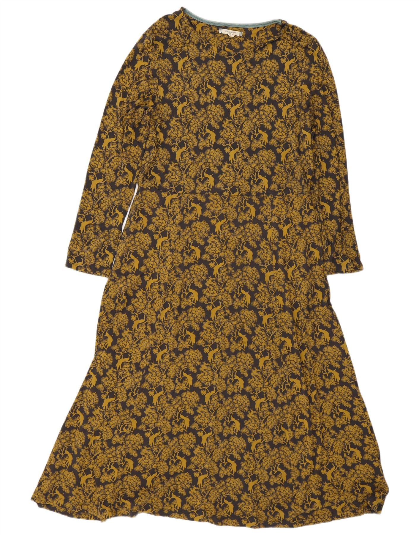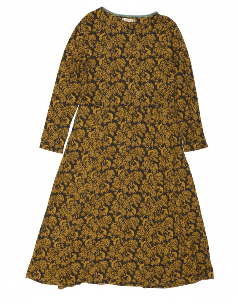 WHITE STUFF Womens Long Sleeve Maxi Dress UK 16 Large Khaki Animal Print