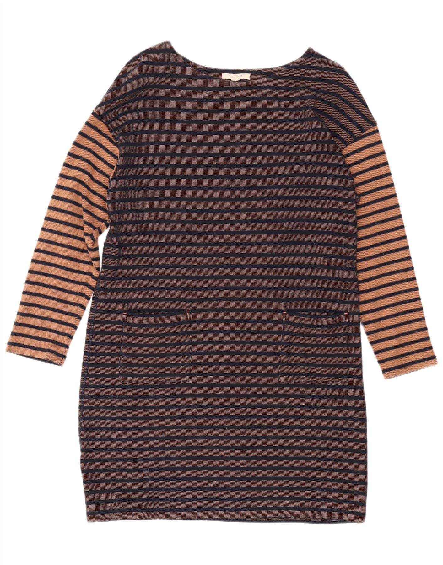 WHITE STUFF Womens Long Sleeve Sheath Dress UK 14 Large Brown Striped