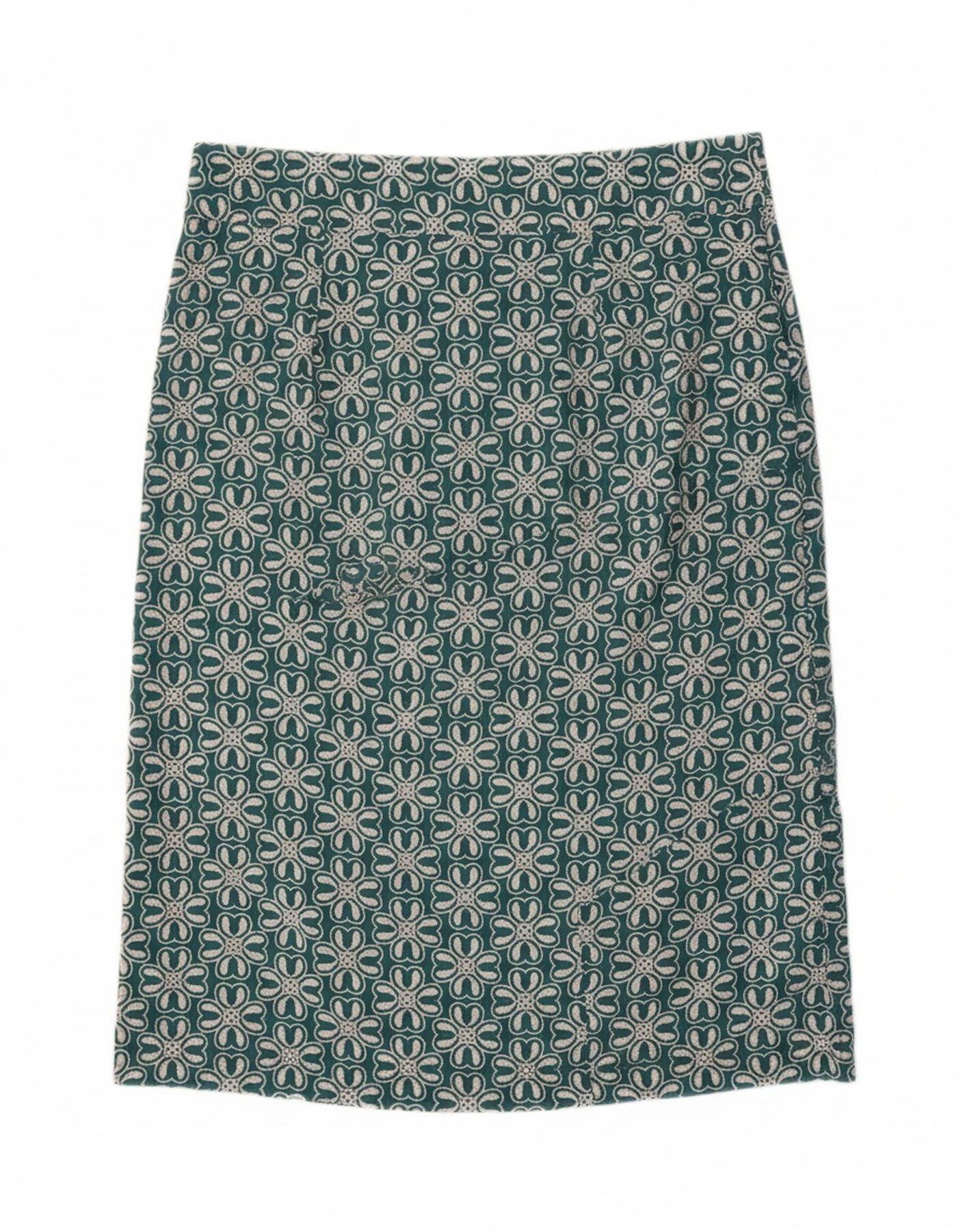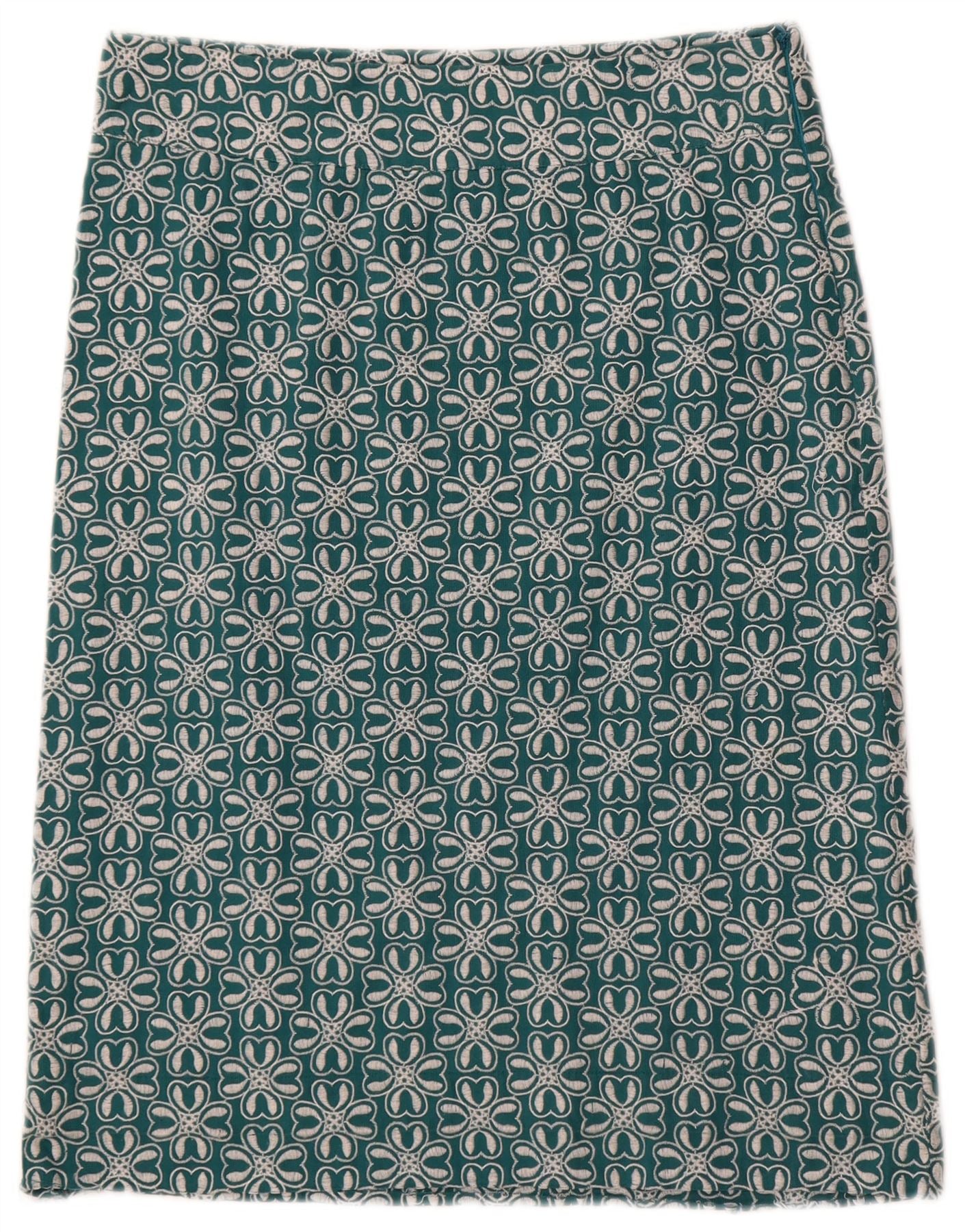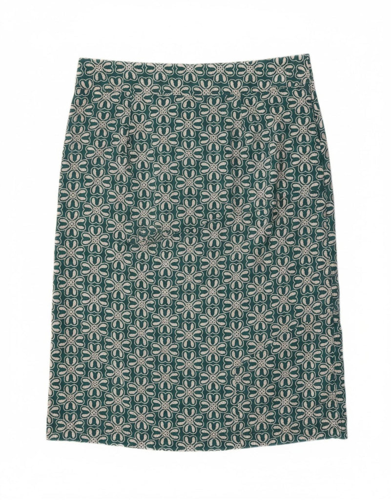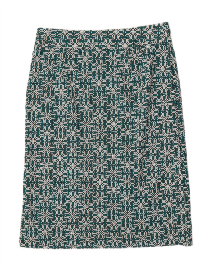 WHITE STUFF Womens Straight Skirt UK 10 Small W30 Green Floral Cotton
