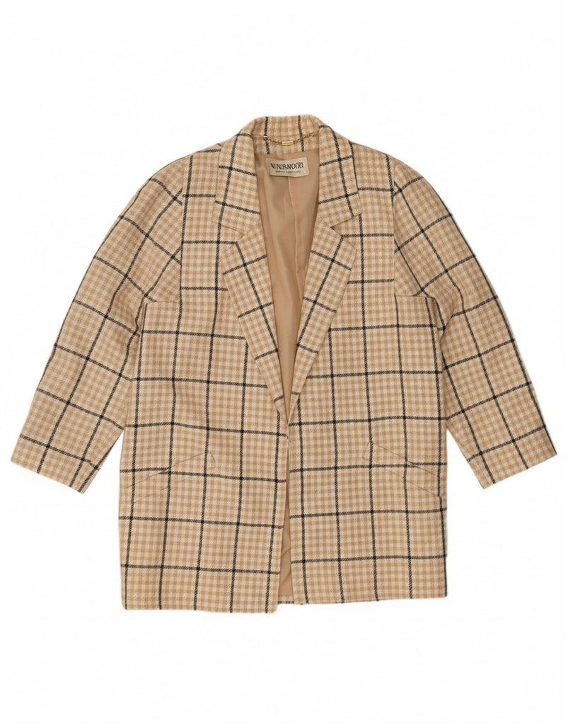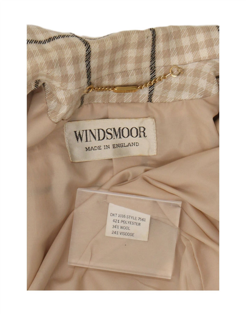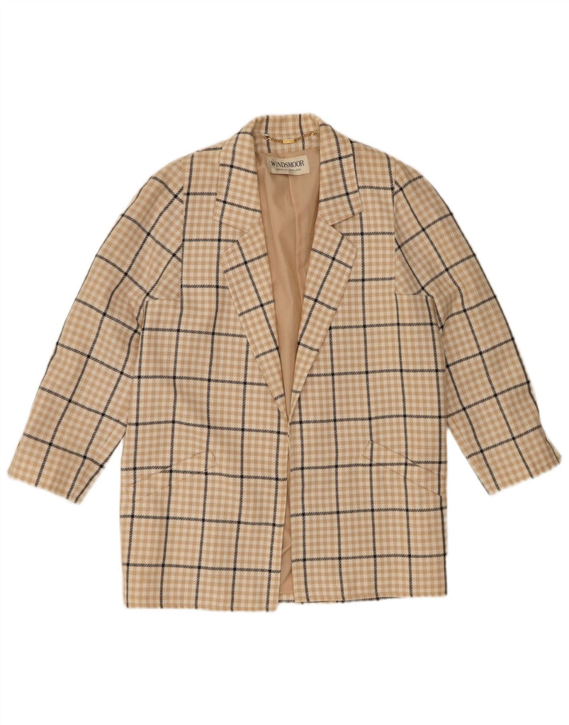 WINDSMOOR Womens Open Blazer Jacket UK 16 Large Beige Check Polyester