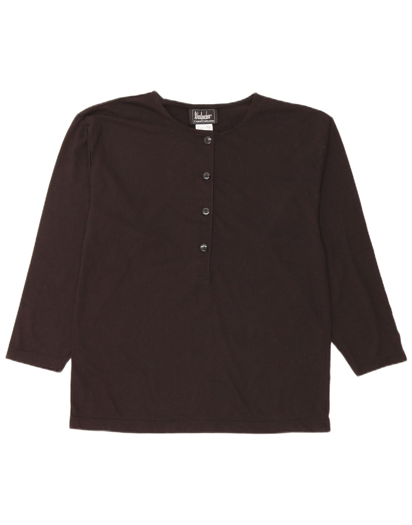 WOODPECKER Womens Top Long Sleeve UK 10/12 Small Black Cotton