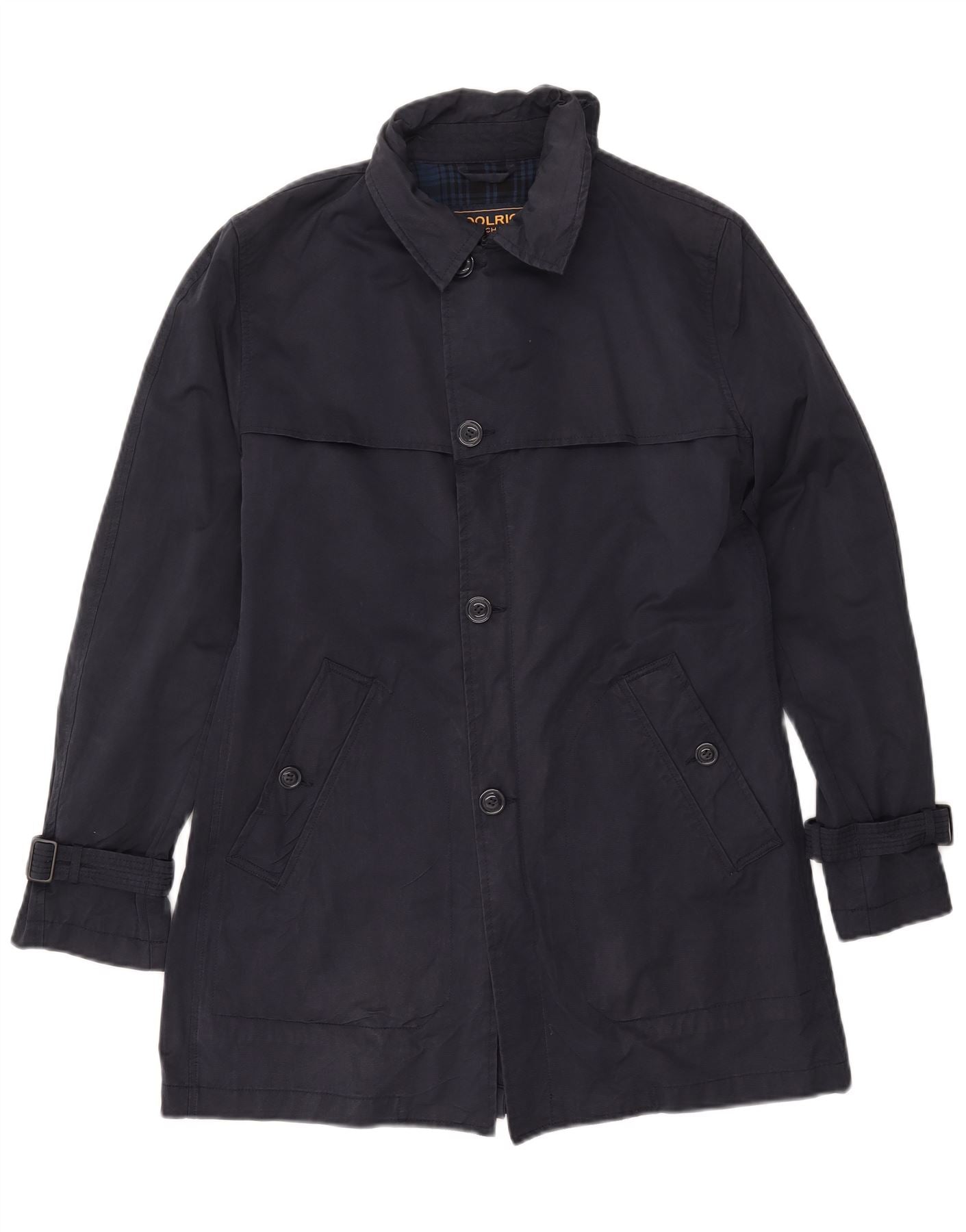 WOOLRICH Mens Trench Coat UK 36 Small Navy Blue Cotton
