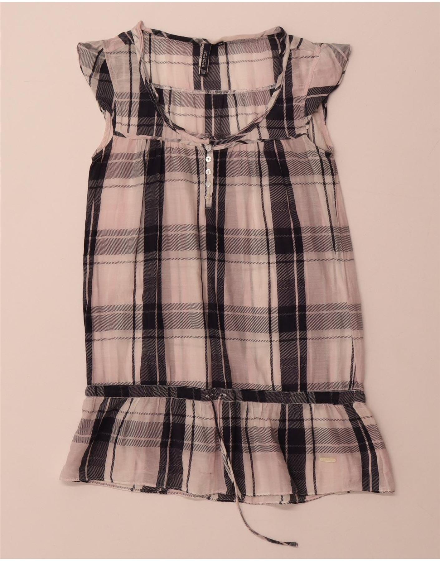 WOOLRICH Womens Tunic Blouse Top UK 6 XS White Check Cotton