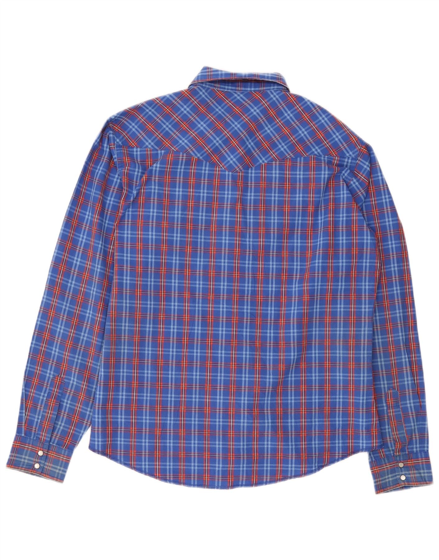 WRANGLER Boys Shirt 15-16 Years 2XL Blue Plaid Cotton