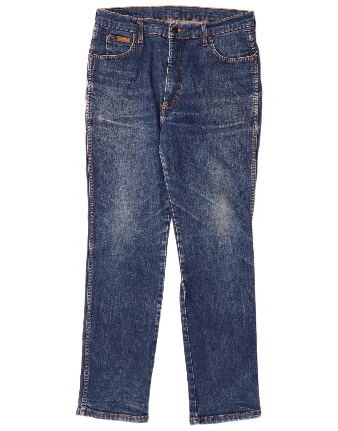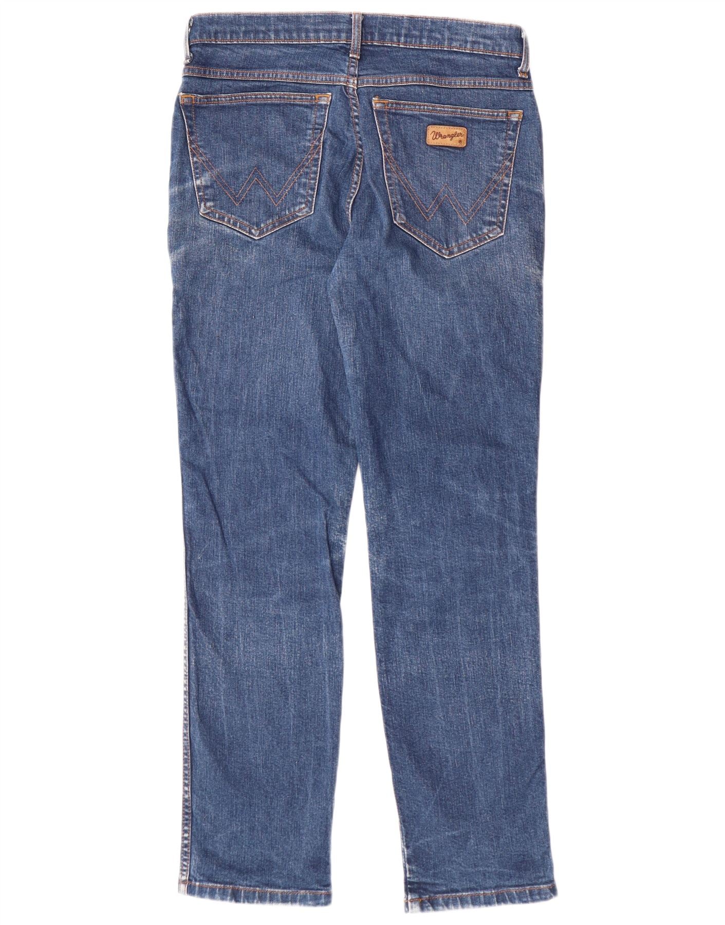 - AI Description: These Wrangler boys straight jeans are crafted from blue stretch denim, offering both durability and comfort. They feature a classic straight fit through the leg and a regular waist. The button closure ensures a secure fit. Practical pockets are included, alongside a subtle Wrangler logo accent. This classic style provides everyday versatility.