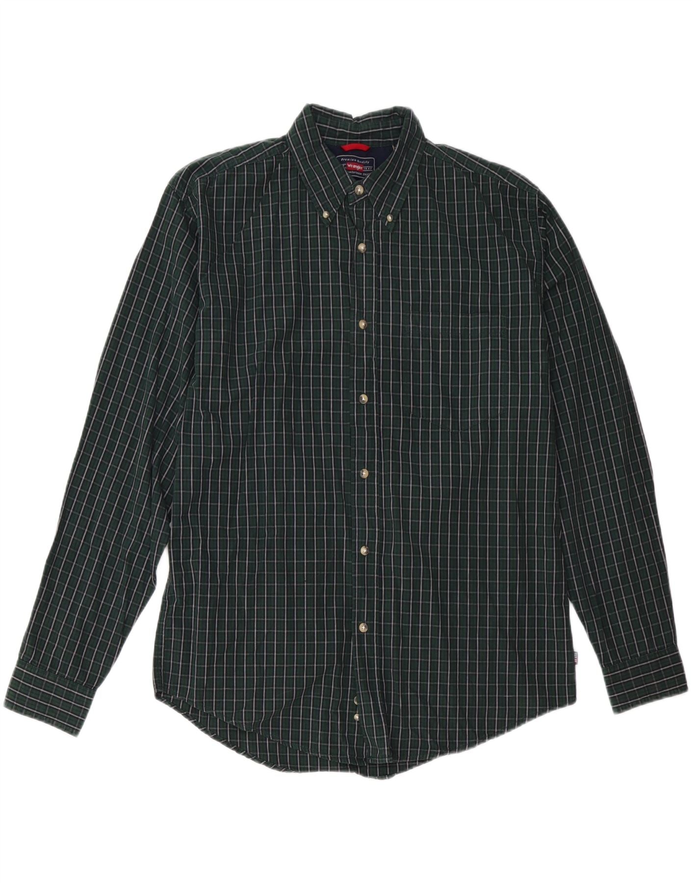 WRANGLER Mens Flannel Shirt Medium Green Check Cotton