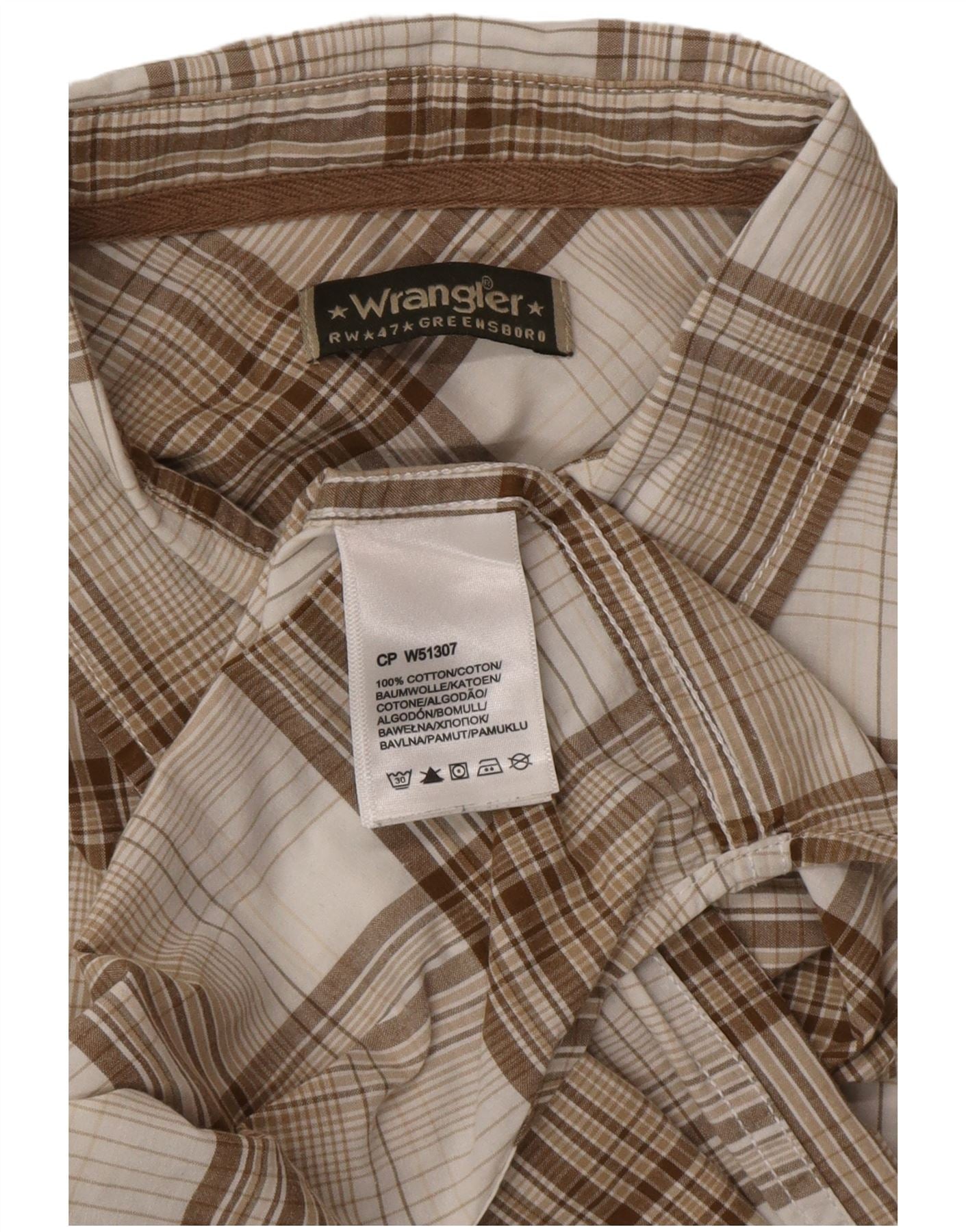 WRANGLER Mens Greensboro Shirt XL Beige Plaid Cotton Classic