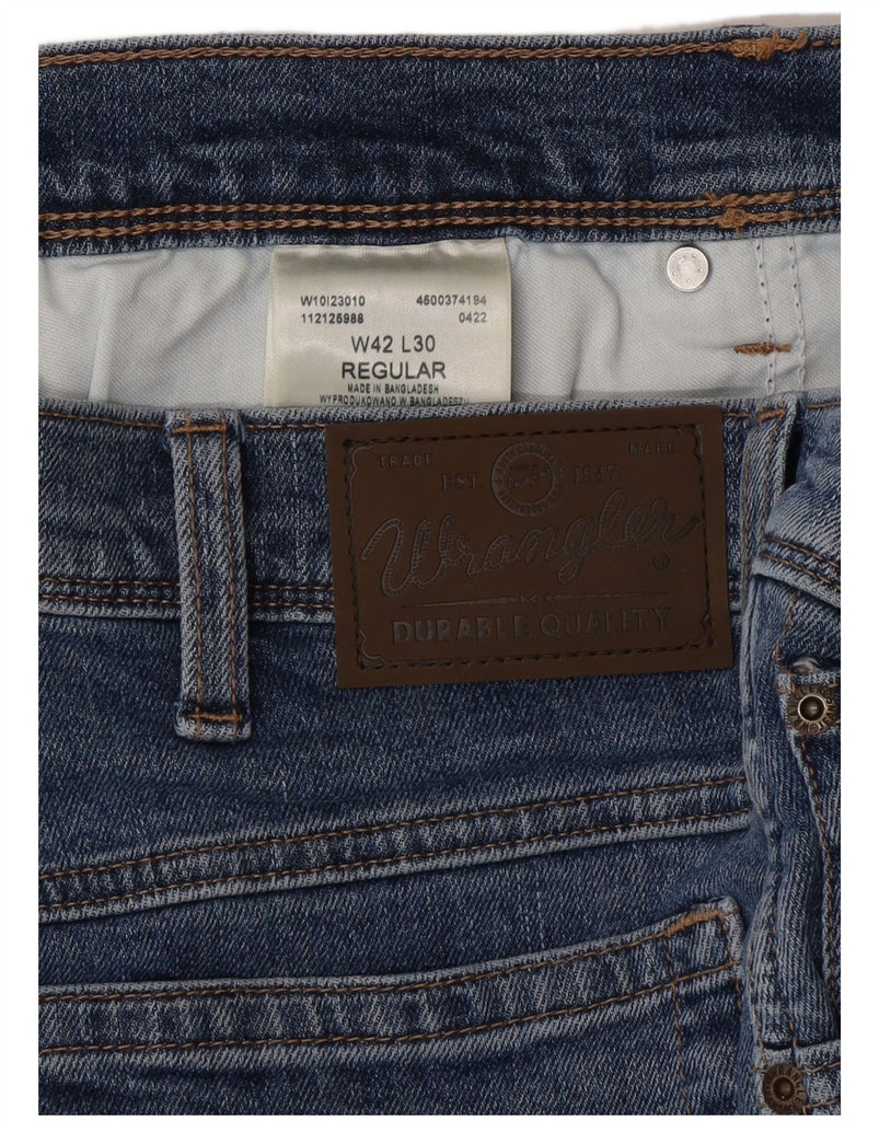 WRANGLER Mens Regular Fit Straight Jeans W42 L30 Blue Cotton